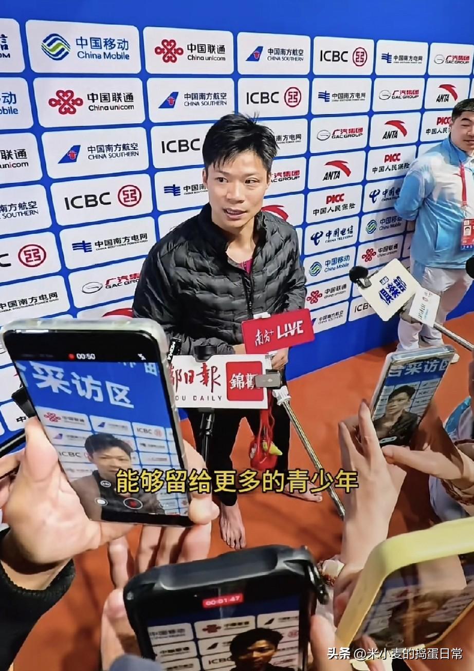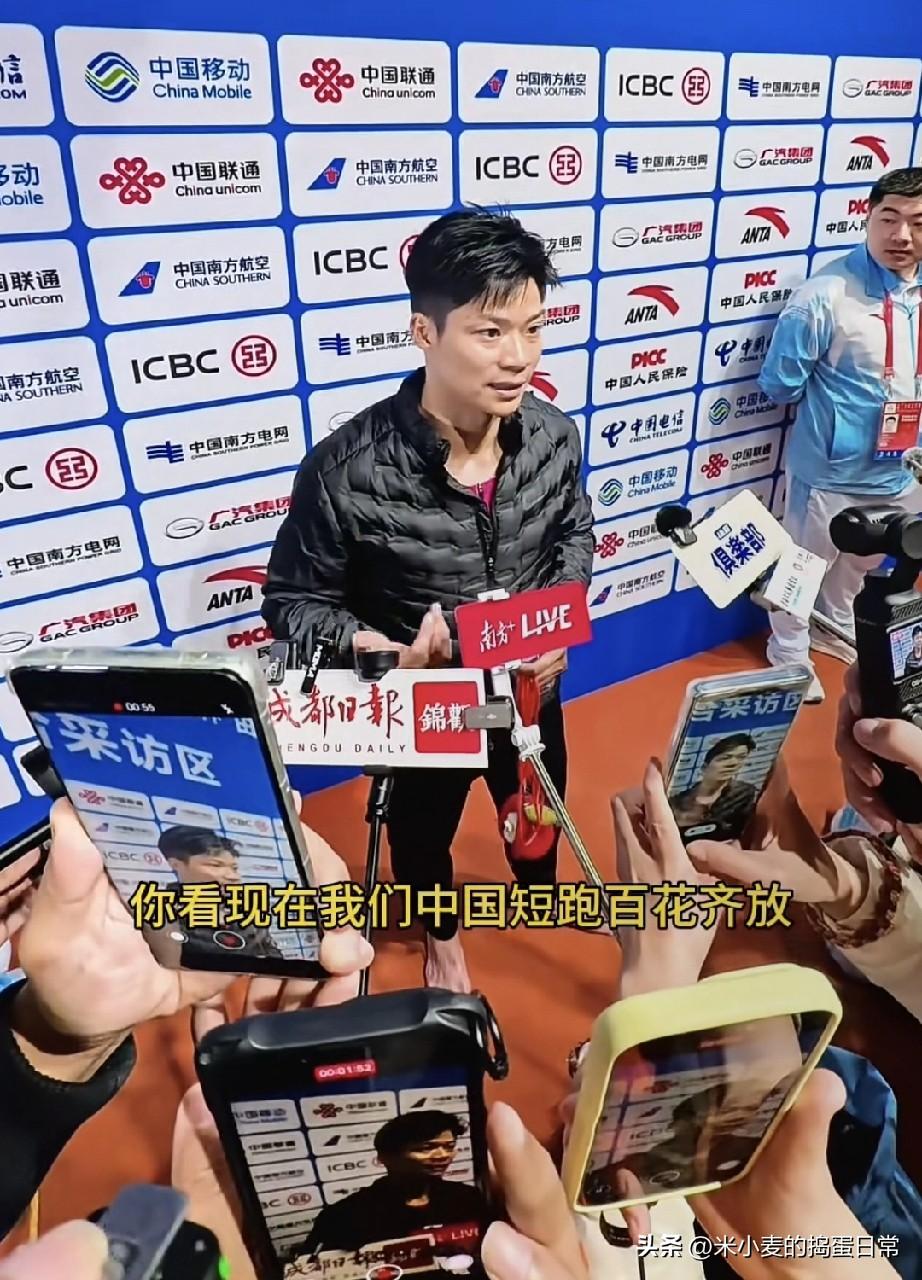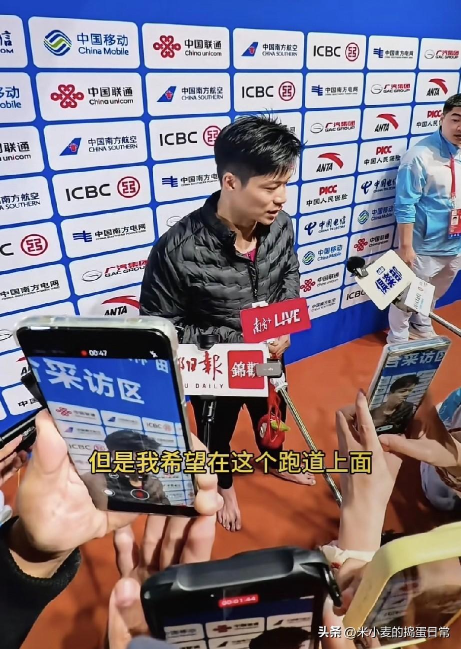 苏炳添正式退役,但9秒83这道坎,该让年轻人踹碎了 全运会混合采访区,光着脚的苏炳添攥着话筒,这话一出口,周围举着手机的记者都静了半秒。 他说自己的青春早留在跑道上了,但现在中国短跑“开花了”——这批后生,该把他当年想都不敢想的9秒83,当成新的起点。 这话听得我鼻子一酸:当年他破10秒时,谁能想到黄种人能摸到9秒83?可如今他说“该让年轻人上了”,是底气也是遗憾吧? 但有人说“苏神这是认老了?”,也有人喊“这才是传承啊!”——你们说,他真的“退”了吗?