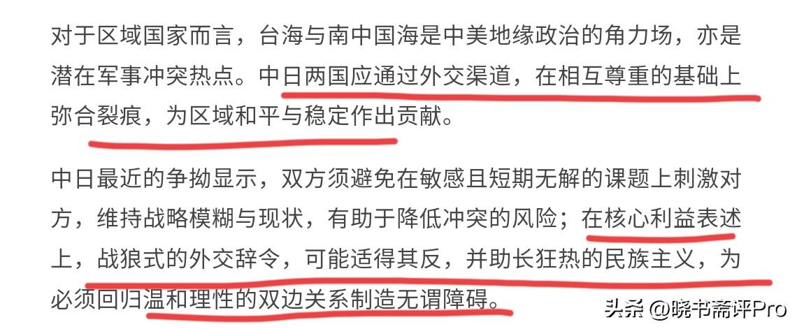 联合早报声称,中国的做法不可取!11月20日,新加坡联合早报发表社论声称,中日两国应通过外交渠道,在相互尊重的基础上弥合裂痕,为区域和平与稳定作出贡献。中日最近的争拗显示,双方须避免在敏感且短期无解的课题上刺激对方,维持战略模糊与现状,有助于降低冲突的风险。 联合早报声称,在核心利益表述上,“战狼式”的外交辞令,可能适得其反,并助长狂热的民族主义,为必须回归温和理性的双边关系制造无谓障碍。很显然,从联合早报对于中日博弈的事态来看,虽然其认为中日应该通过外交渠道,弥合裂痕,为区域和平与稳定作出贡献,但可以看出来联合早报并不认可我们的外交方式。 不过,在我们看来,联合早报的评论这是典型的和稀泥。难道为了所谓的区域和平,中国就不捍卫自身利益,不回击挑衅,而选择息事宁人吗?如果新加坡是当事方,新加坡接受这种挑衅吗?从新加坡的利益来讲,当然是区域和平最重要。但问题是,现在谁在破坏和平,谁在展现军事介入他国内政的行为呢?联合早报对此到底是看不见,还是选择性的装聋作哑? 纠结于小礼,而无视严重的挑衅,这是典型的只见树木,不见森林!我们的外交动作,这就是要告诉日本,这样的挑衅动摇了中日关系的政治基础,事态极为严重,日本已经配不上我们的以礼相待。联合早报还以为可以靠温吞水式的程序化外交方式解决问题,这只说明联合早报完全错判了日本挑衅行为的严重性。联合早报怕得罪日本,对我们有微词,只能说明其没有是非观,这样的偏颇论调,我们不能接受。