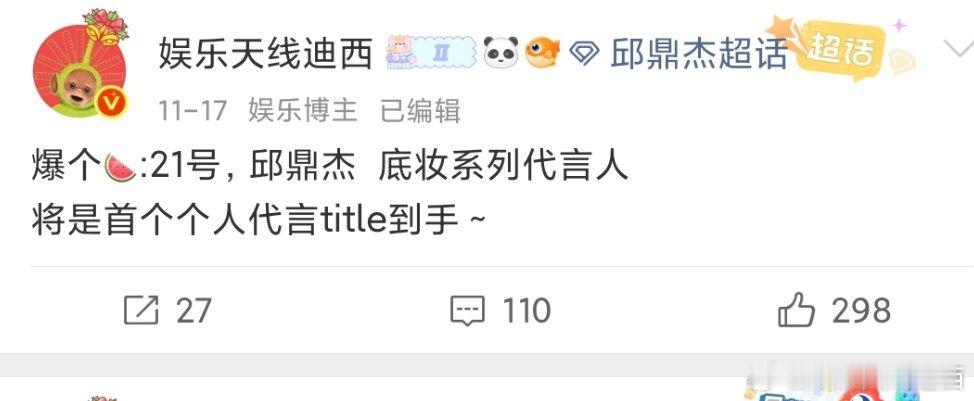 验个🍉 17号的时候放的恭喜明天即将官宣邱鼎杰BABI品牌顶级持妆代言人,收获首个代言title,今后会越来越好的~