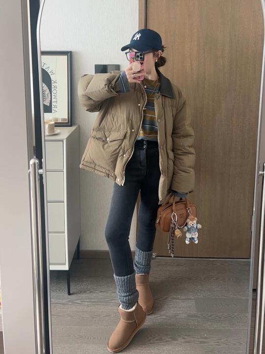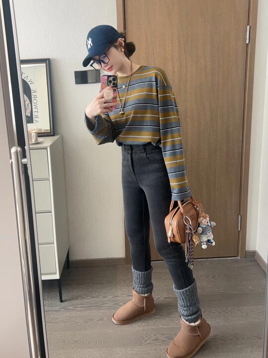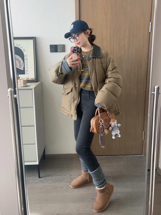 怕冷且不爱穿秋裤的南方小金豆有话说:加绒牛仔裤➕堆堆袜cp实在是太友好了!!这么穿真的暖和!堆堆袜和基础款雪地靴真的很搭!保暖时髦咱都有! 周末室外遛弯儿这么穿一点都不冷!!