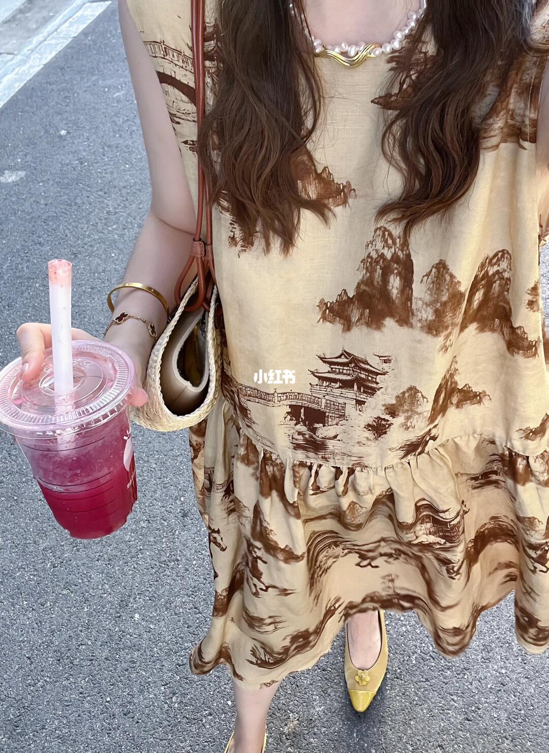 宽宽松松的三伏天~山水画穿身上怎么这么好看🥜🍪🐎40度还得是亚麻!!