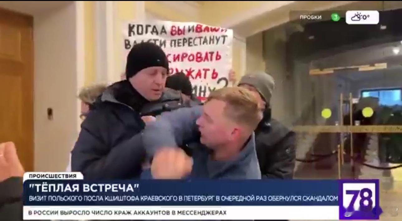 ‼️ 波兰关闭俄罗斯大使馆后,波兰驻俄大使在圣彼得堡遭袭击 这事绝对有预谋!波兰关了俄大使馆,随后波兰驻俄罗斯大使克日什托夫·克拉耶夫斯基被围殴 事发俄罗斯圣彼得堡。 据波兰电视台报道,大使克拉耶夫斯基遭到约10名手持反波兰和反乌克兰标语的激进分子袭击,这些人把大使包围起来,试图殴打他。 波兰外交部发言人表示:"事件起因是言语辱骂,但后来发展成真正的肢体暴力企图。" 据报道,这是多年来最严重的此类安全事件。