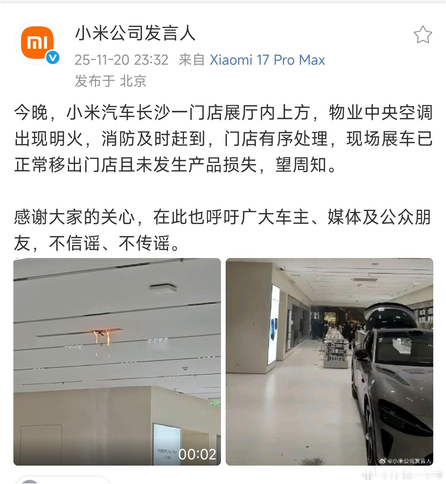 快速辟谣是好事,希望得追究恶意造谣的责任啊,要不然他们下次还敢。他们拿个消防员灭火的图就能造谣小米展车着火,他们为什么不拿图一这个视频,因为一看就知道火源在天花板上。拿消防员灭火的图来带节奏,说明他们知道该怎么造谣传谣。