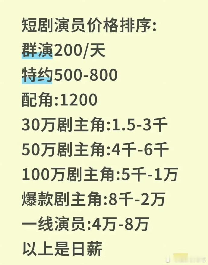 你要跟大部分底层工作比确实高但演员本来也是高收入职业,群演200左右一天其实也还好