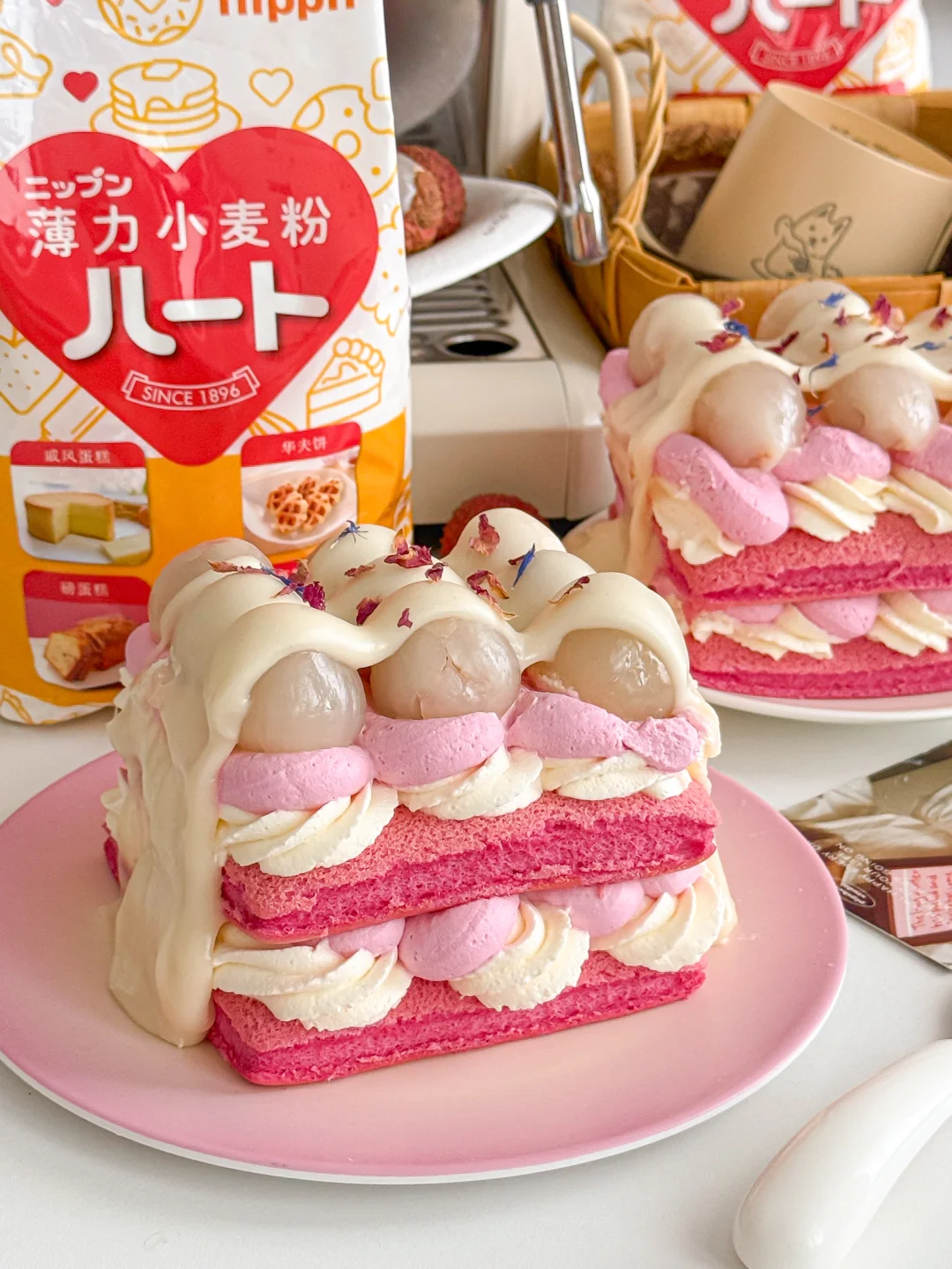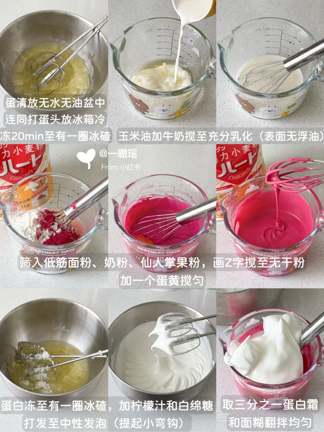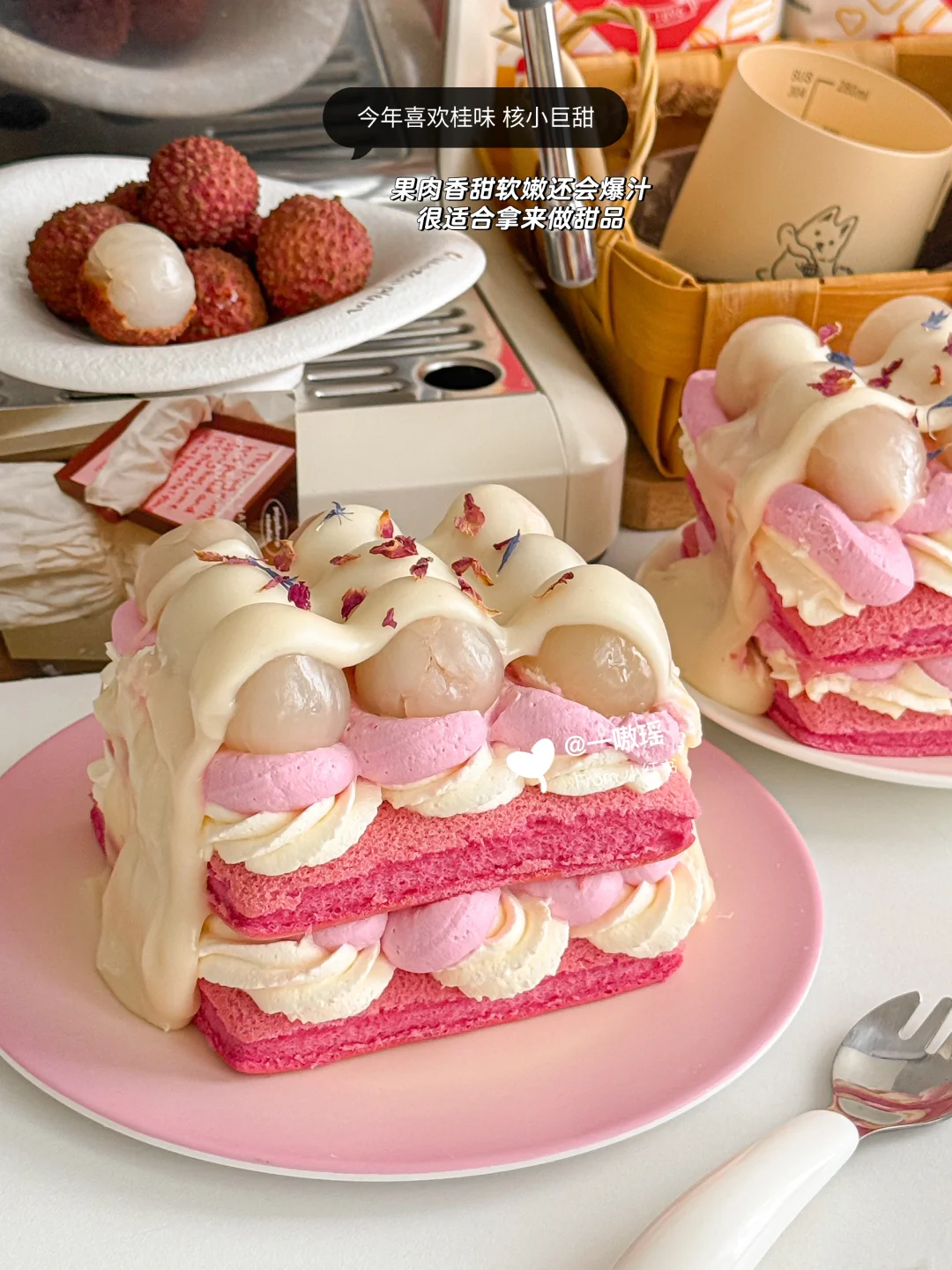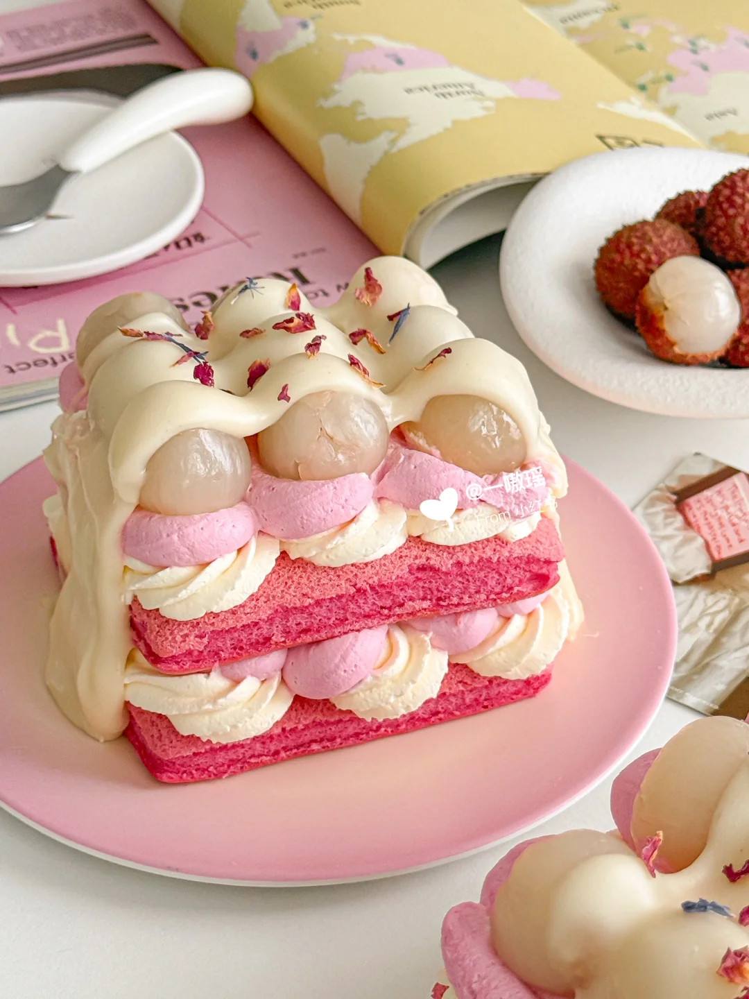 夏日限定小甜品,荔枝玫瑰麻薯蛋糕🌹🍰 给松软细腻的奶油蛋糕盖上糯叽叽能拉丝的“夏凉被” 一口享受四重口感,做法也简单! 一起来复刻~🙌🏻 - 🛒食材 💗蛋糕胚 蛋清170g|蛋黄1个|白糖40g 柠檬汁5g|牛奶90g|玉米油40g 奶粉15g|低筋面粉70g|仙人掌果粉6g 🌀拉丝麻薯 糯米粉60g|玉米淀粉10g|糖10g 牛奶120g|黄油10g 🌹玫瑰奶油 淡奶油270g|玫瑰酱15g|适量仙人掌果粉 🩵原味奶油 淡奶油270g|白绵糖10-15g