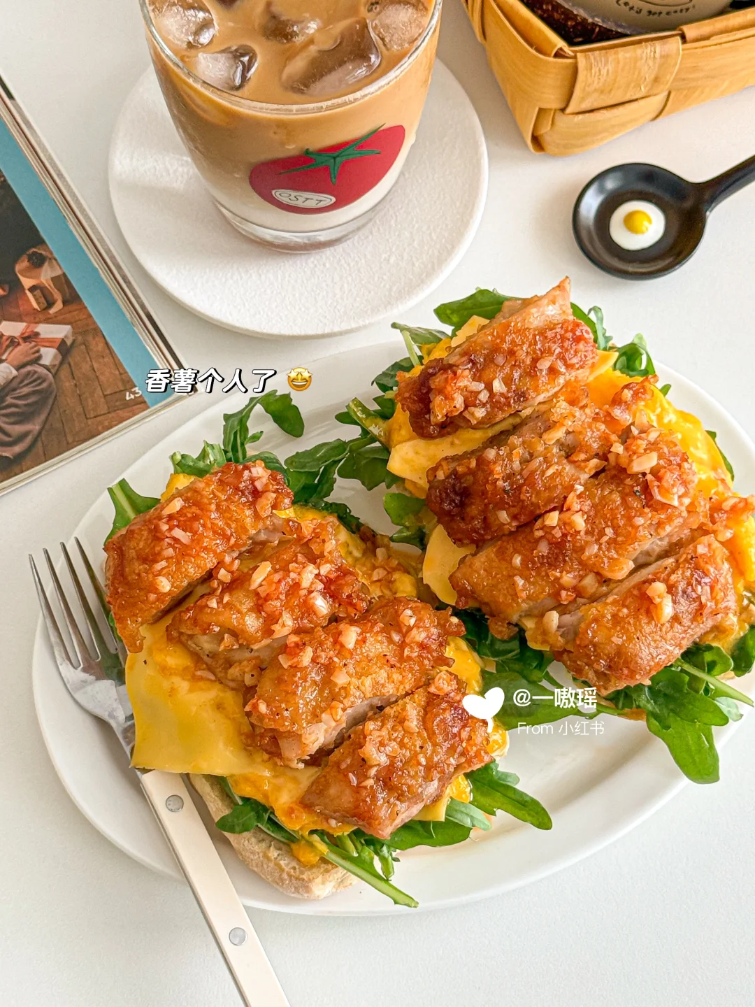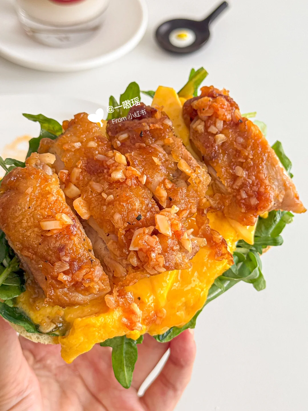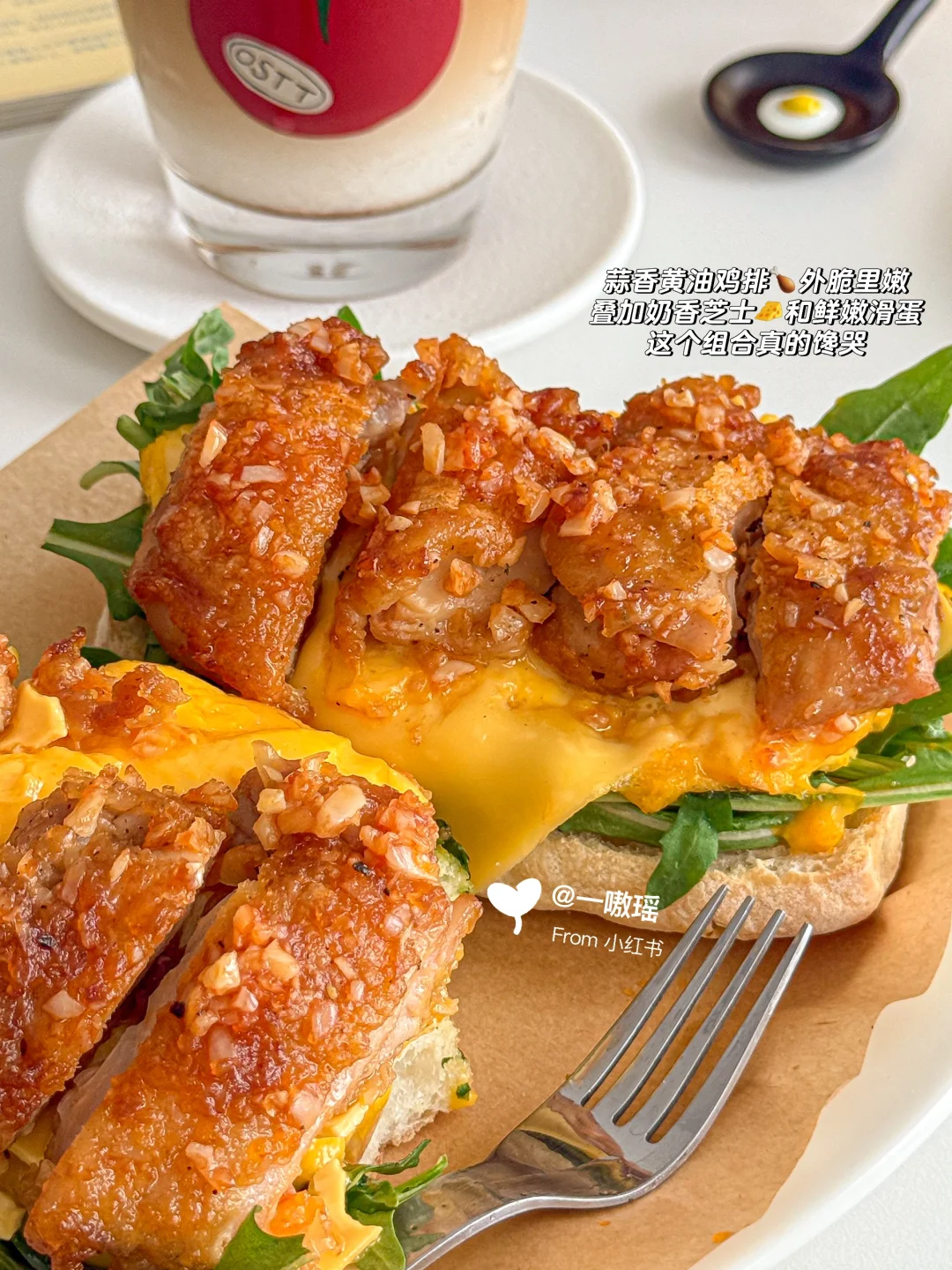 一口下去外脆里嫩会爆汁儿的蒜香黄油鸡排🍗叠加奶香芝士🧀和鲜嫩滑蛋