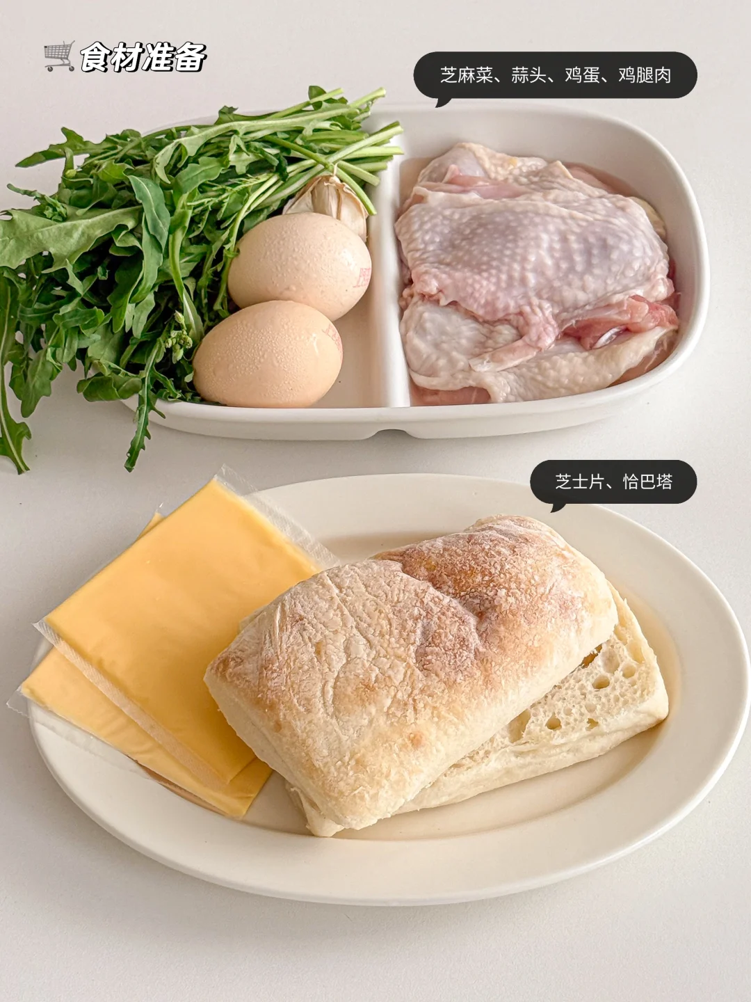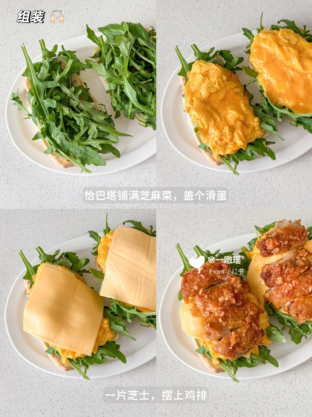 恰巴塔|芝麻菜|鸡蛋|芝士片|鸡腿肉|蒜末