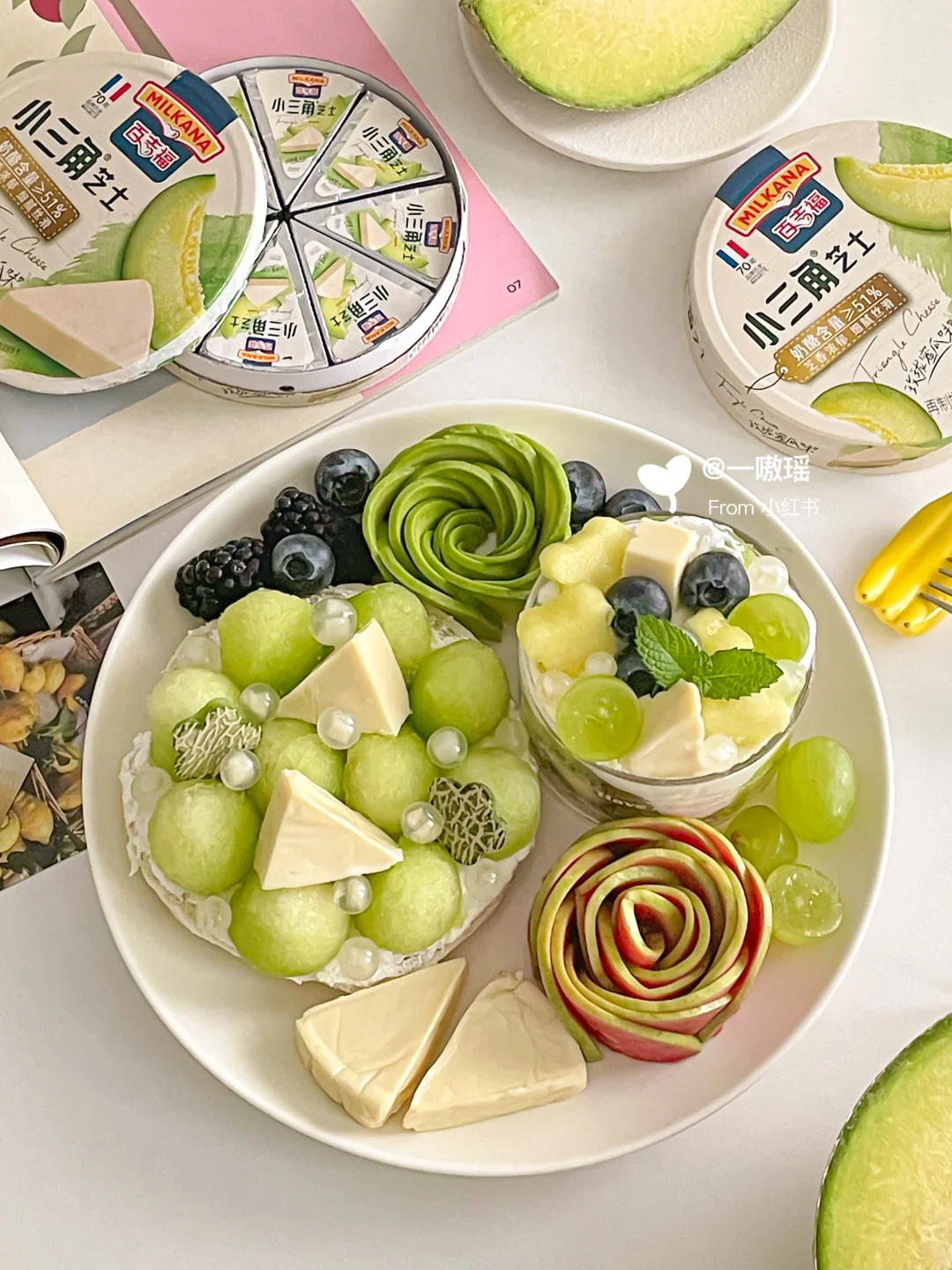 搭配玫珑蜜瓜味小三角芝士🧀又是爆棚满足的一餐!