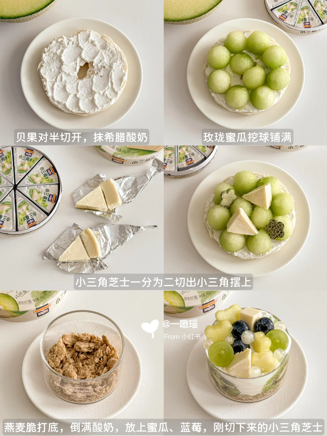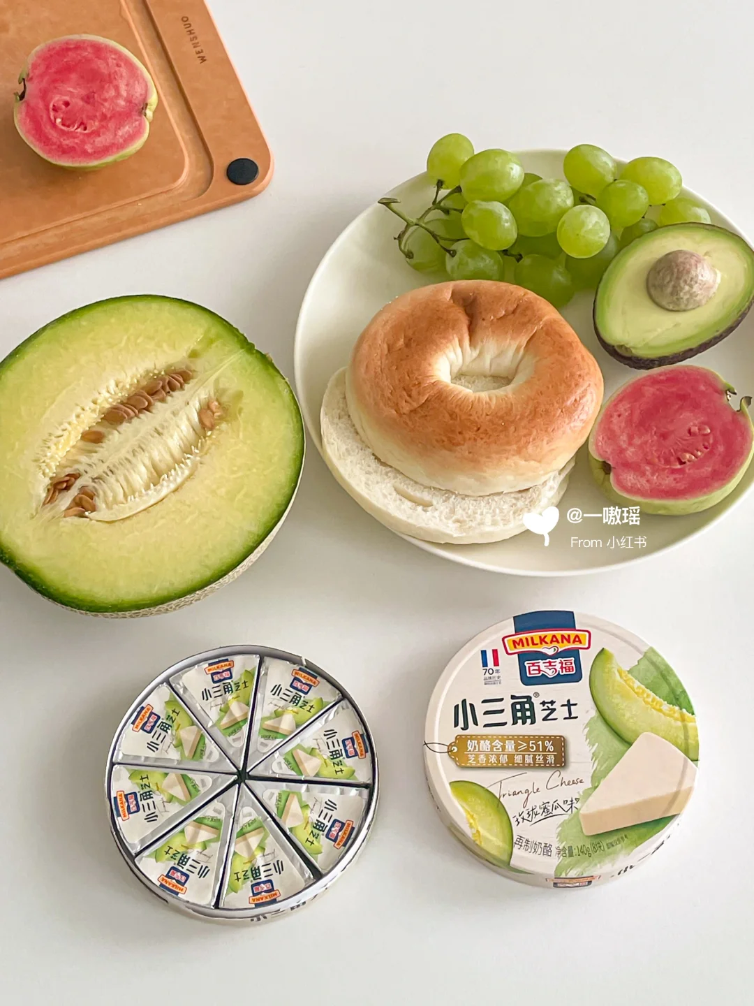 贝果➕玫珑蜜瓜味小三角芝士 ➕希腊酸奶