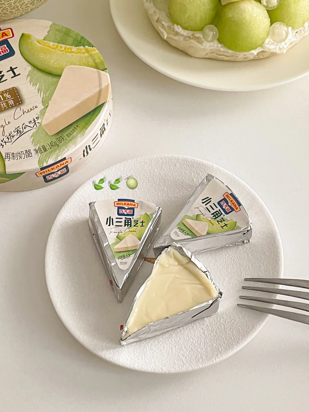 🍈芝士用的是老朋友百吉福新出的玫珑蜜瓜味小三角芝士,新口味配方新升级,用到>51%奶酪含量,香醇新鲜奶酪+奶油奶酪,奶味超浓郁!