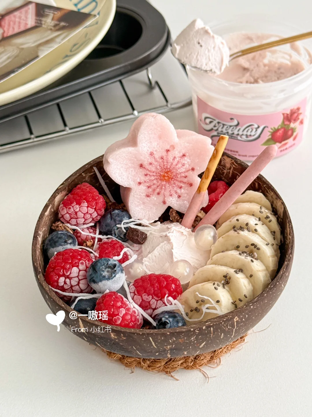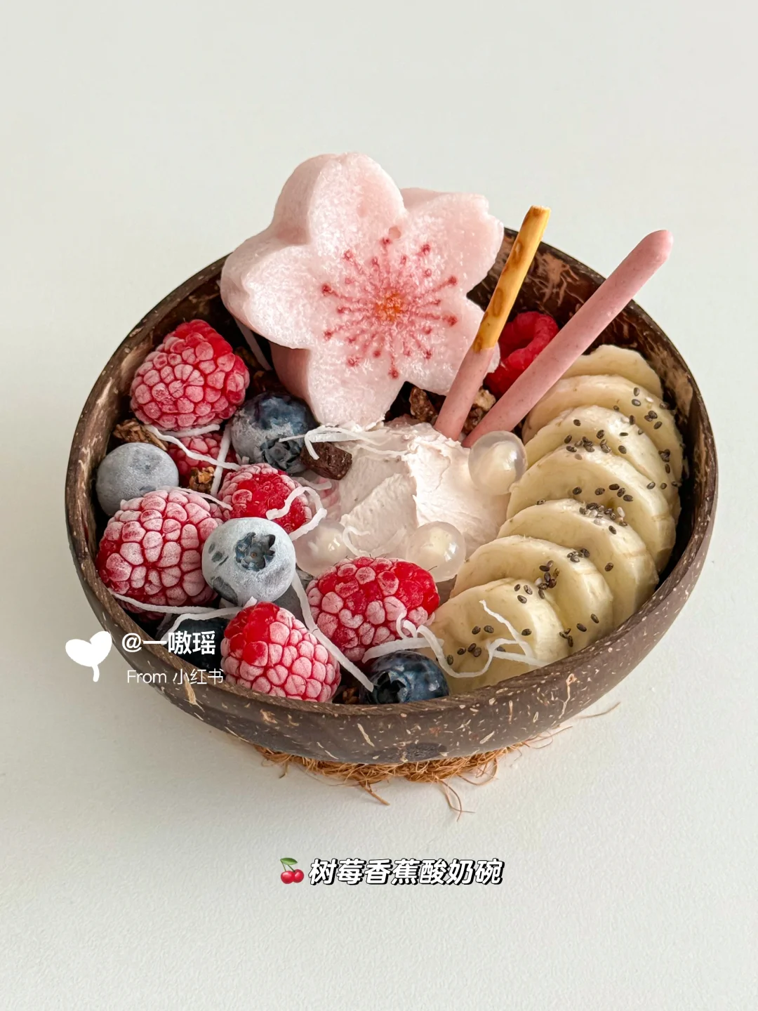 树莓+蓝莓+香蕉+草莓玫瑰希腊酸奶+樱花米糕