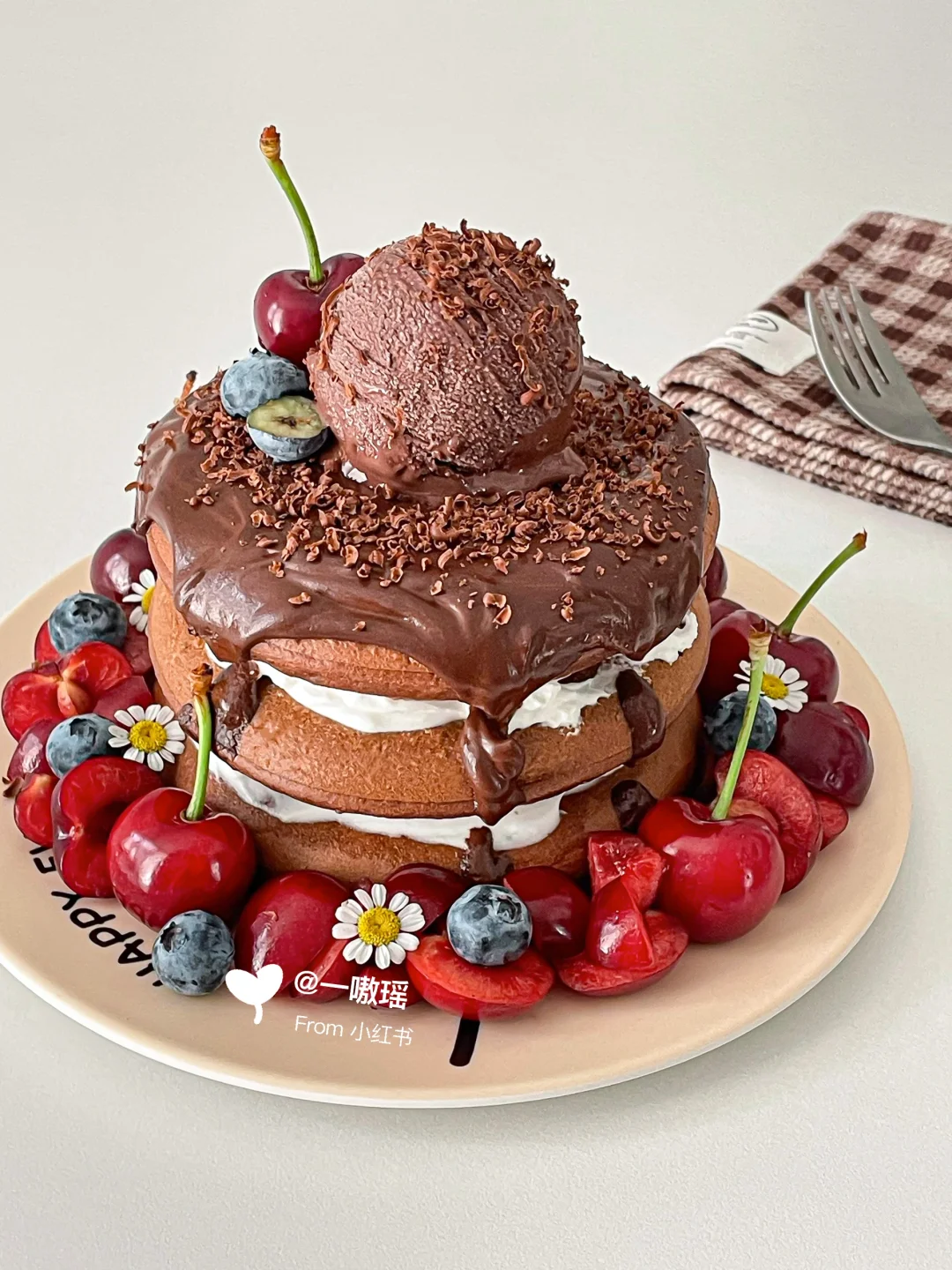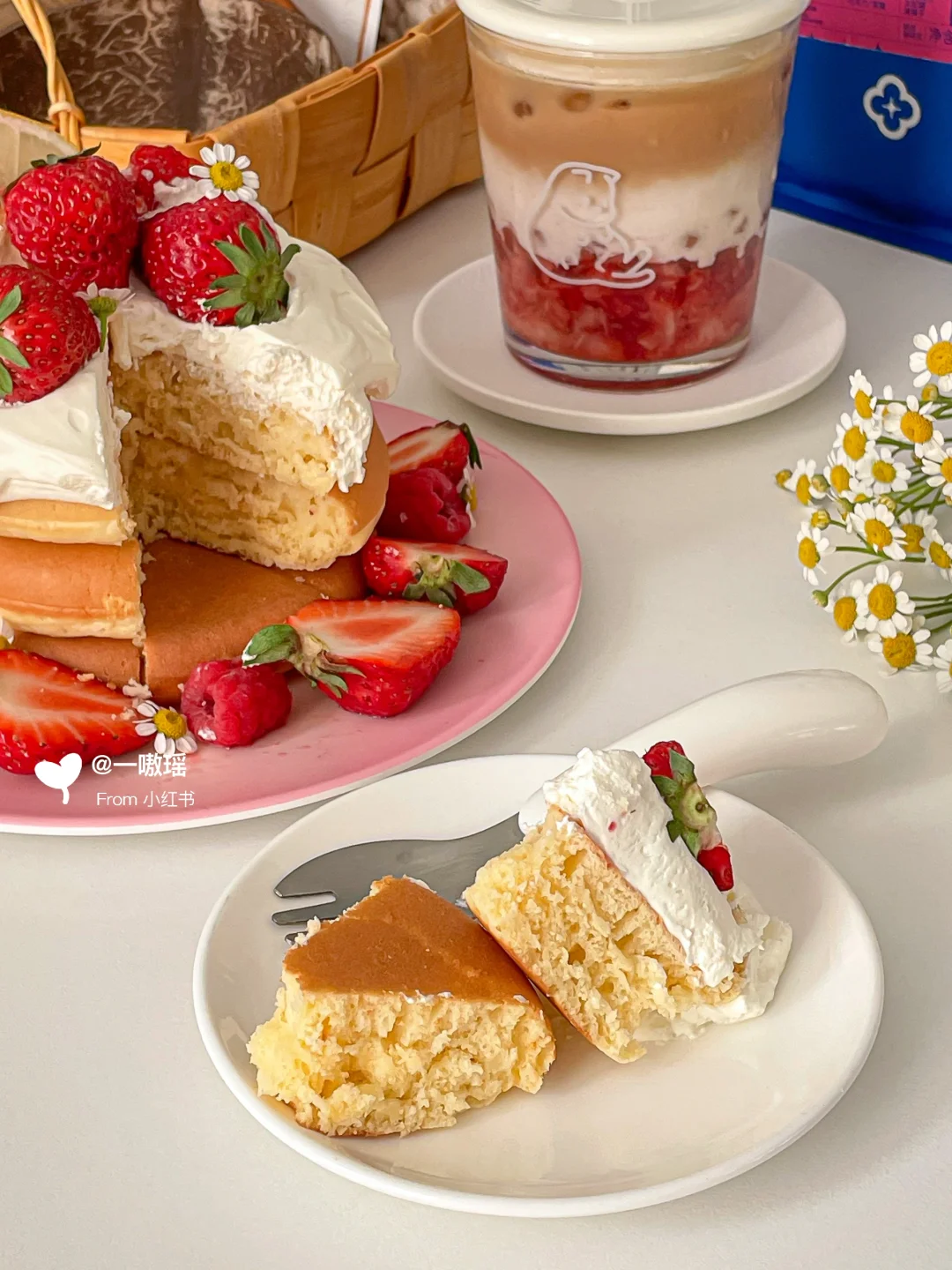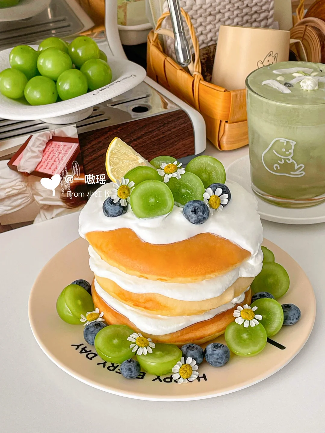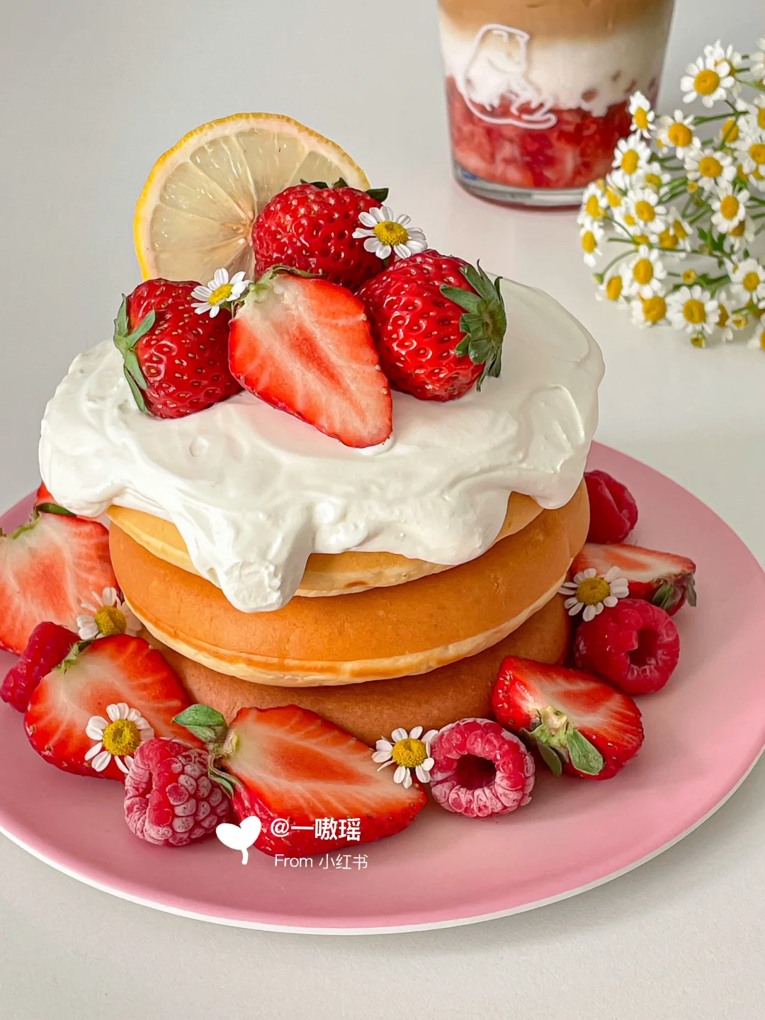 超厚且松软的蛋奶松饼裹着希腊酸奶,根本停不下口! 普通平底锅就能做🍳四种搭配,好看又好吃😋 〰️ 🛒食材 原味🥞:低筋面粉120g|鸡蛋一个|糖20g|牛奶80g|玉米油20g|泡打粉5g 巧克力🍫:低筋面粉90g|可可粉15g|鸡蛋一个|牛奶80g|玉米油16g|糖20g|泡打粉6g · 👩🏻‍🍳做法 ▫️鸡蛋加牛奶先打匀 ▫️再加入低粉、糖、玉米油、泡打粉搅至顺滑 ▫️中火预热平底锅,放在湿毛巾上稍微冷却 ▫️转小火,从高处倒入面糊 ▫️表面冒密集小泡后再翻面煎1分钟 ▫️每一层松饼抹上希腊酸奶 · 💬用普通平底锅做就好🍳只是没有图上这么厚(其实过分厚也不好,吃大口会有点噎🥲)