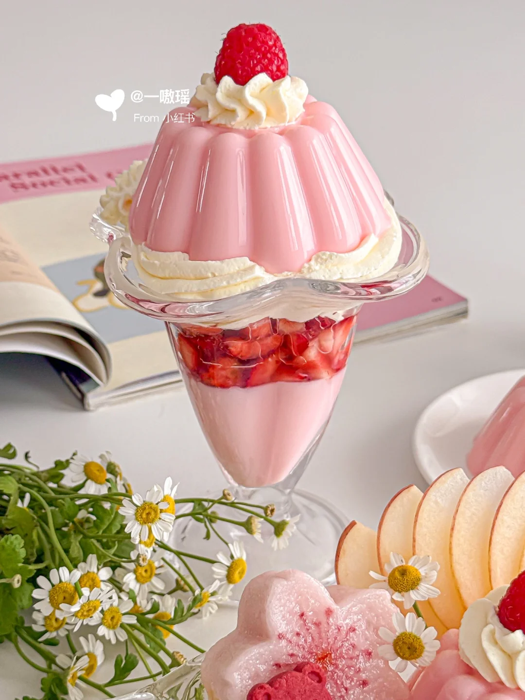 免烤箱🍧草莓奶冻布丁船🎀入口即化超嫩滑✨