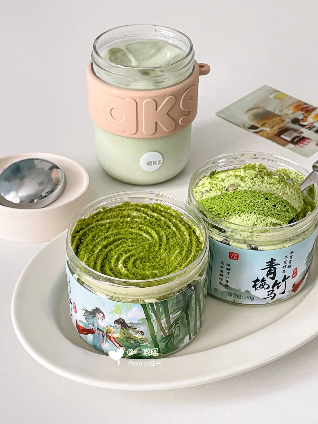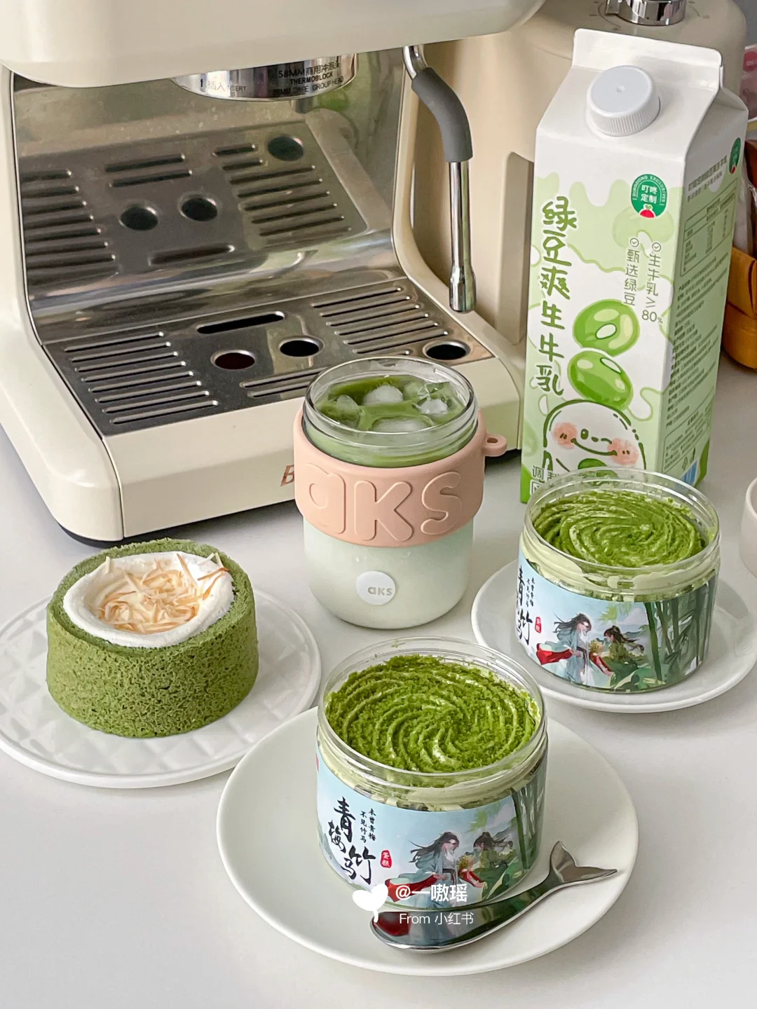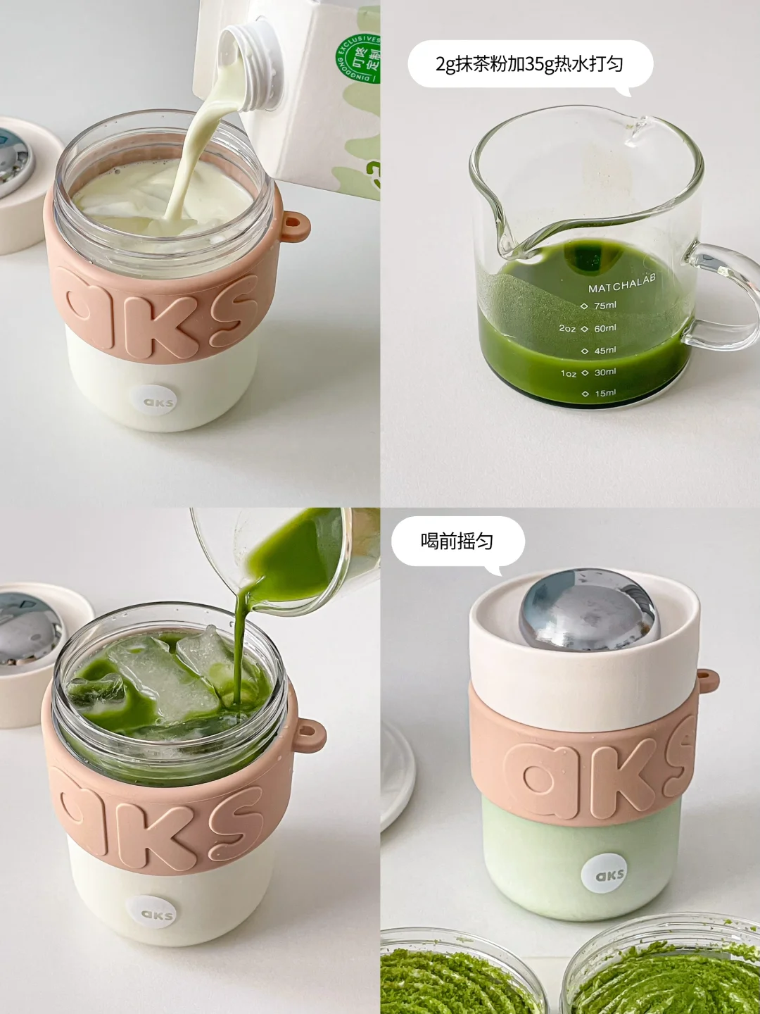 🍃🥛用新到的珍珠杯盖随行杯自制了一杯抹茶绿豆牛乳