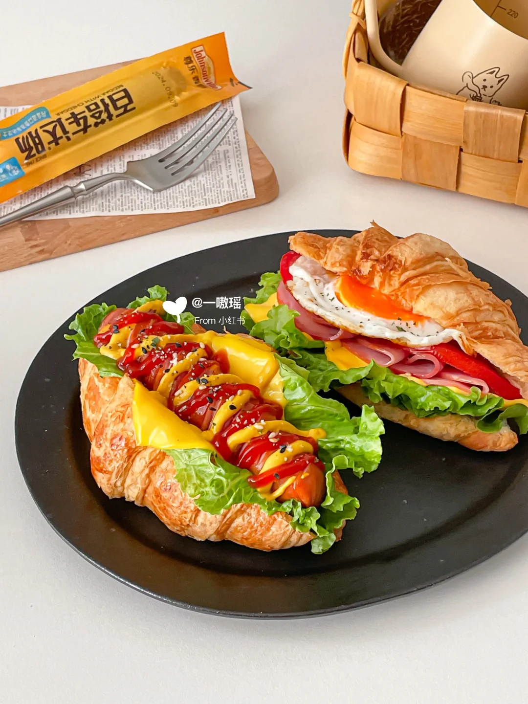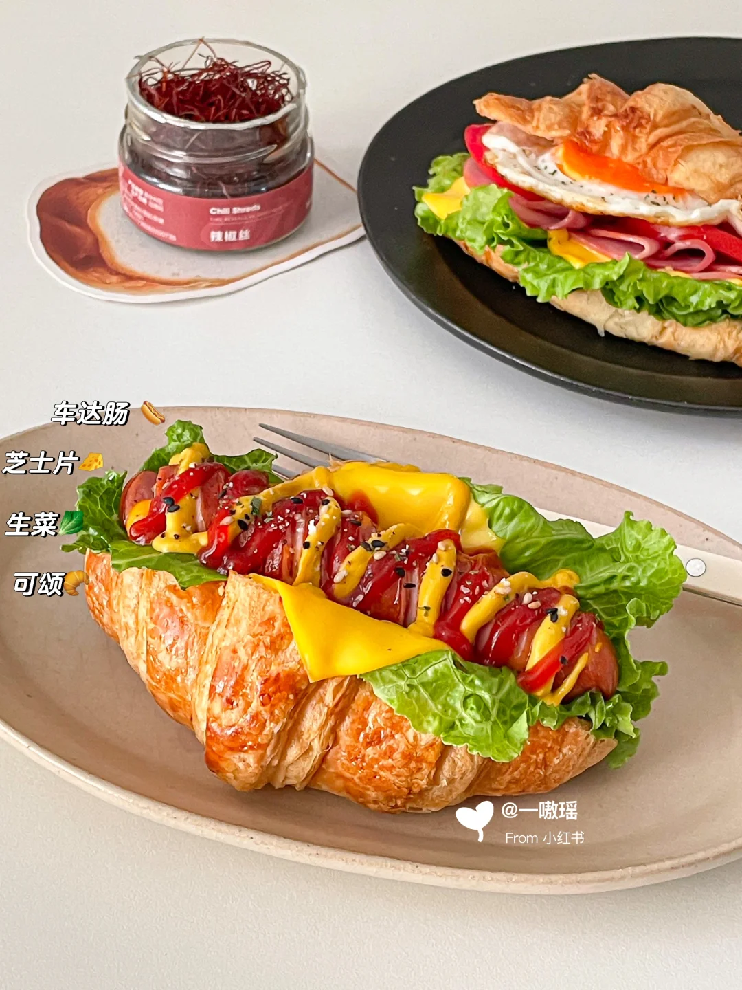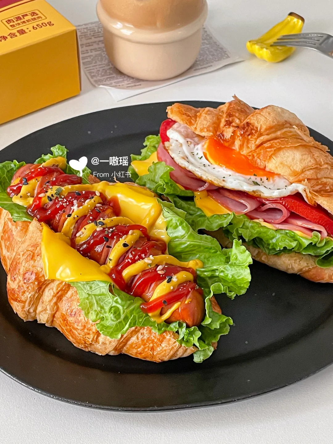 10分钟Brunch🥐好吃的可颂烤肠三明治双拼🌭