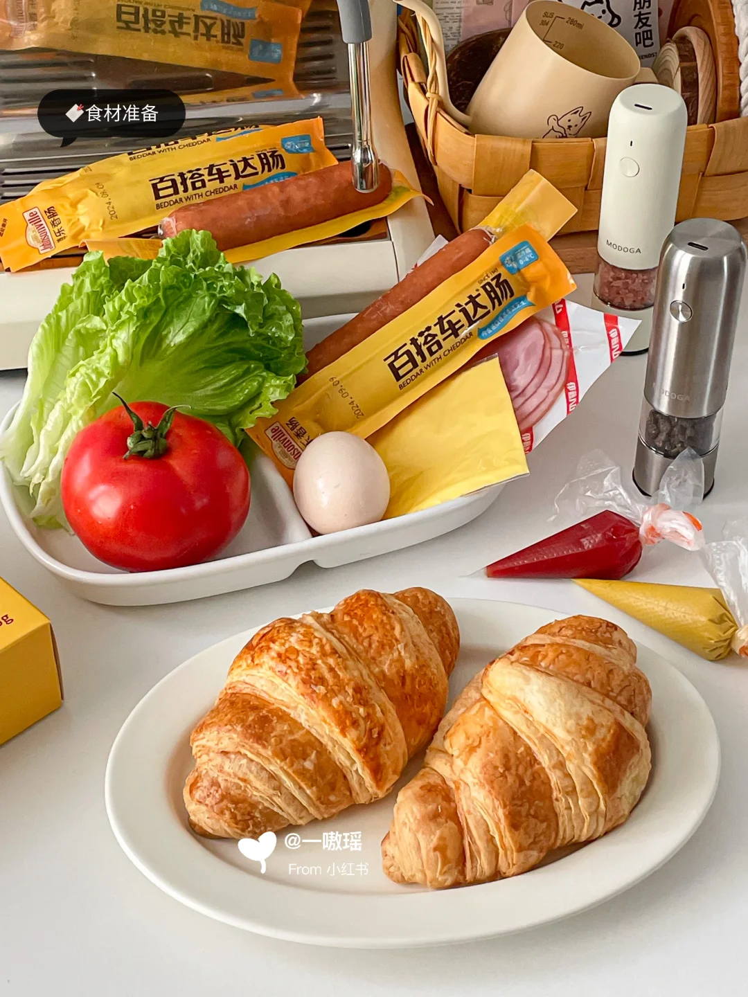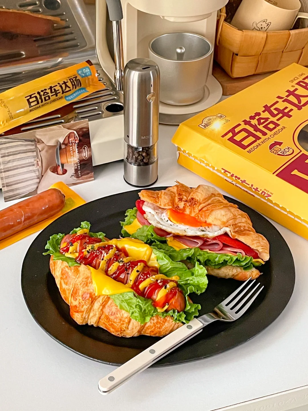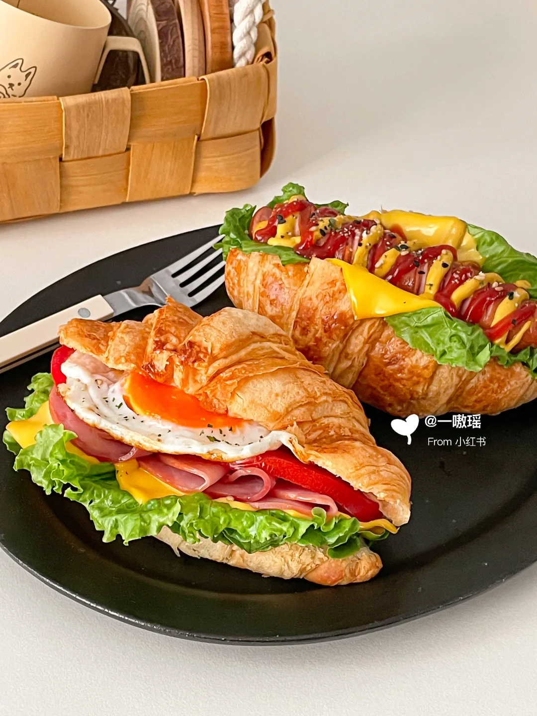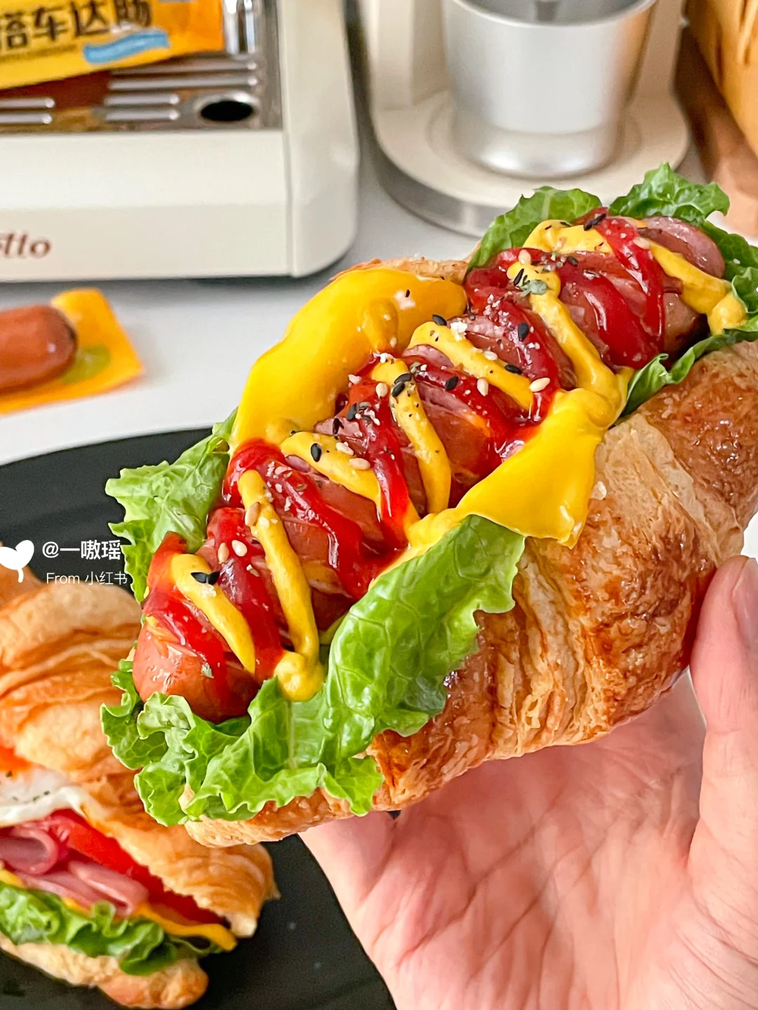 10分钟Brunch🥐好吃的可颂烤肠三明治双拼🌭