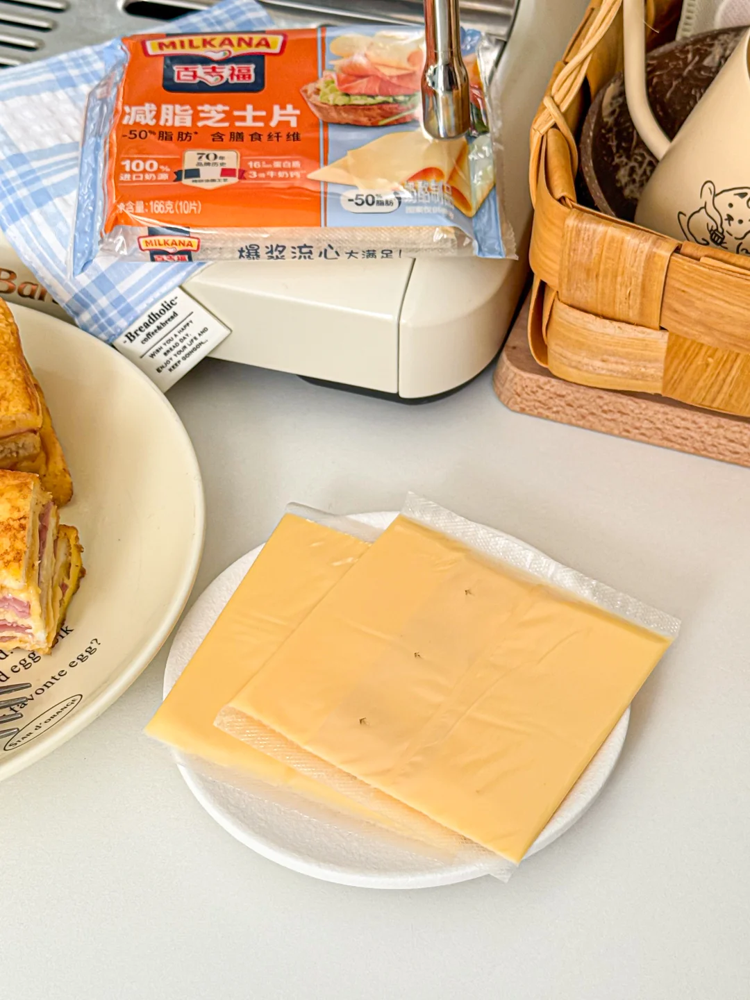 最近温度都在30左右,夏天的较量已经开始了!连芝士片都换成了百吉福减脂芝士片🧀听朋友说是70年奶酪品牌,精研法国工艺。虽然✂️脂但口感不减,奶香醇厚,满满优质蛋白。还添加了膳食纤维,专研配方,✂️脂一半!怕长肉的朋友也可以放心炫,营养百搭又好吃😋 不愧能连续六年芝士片销量☝️🤓