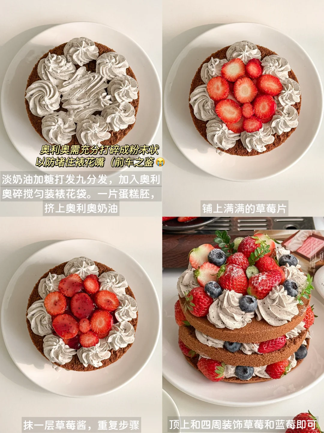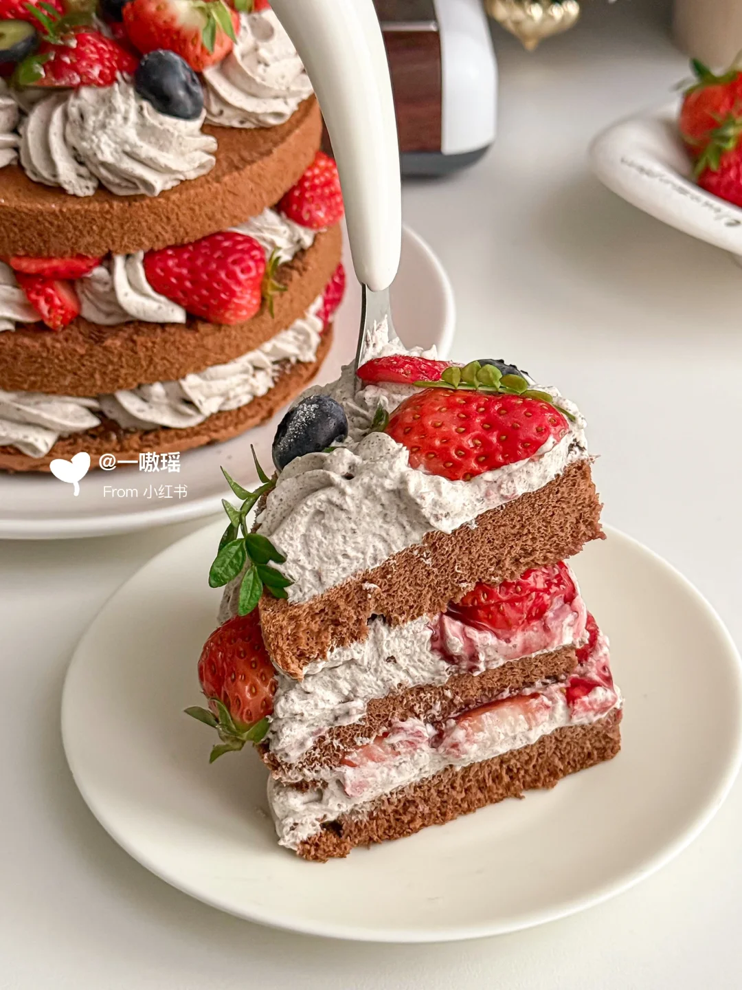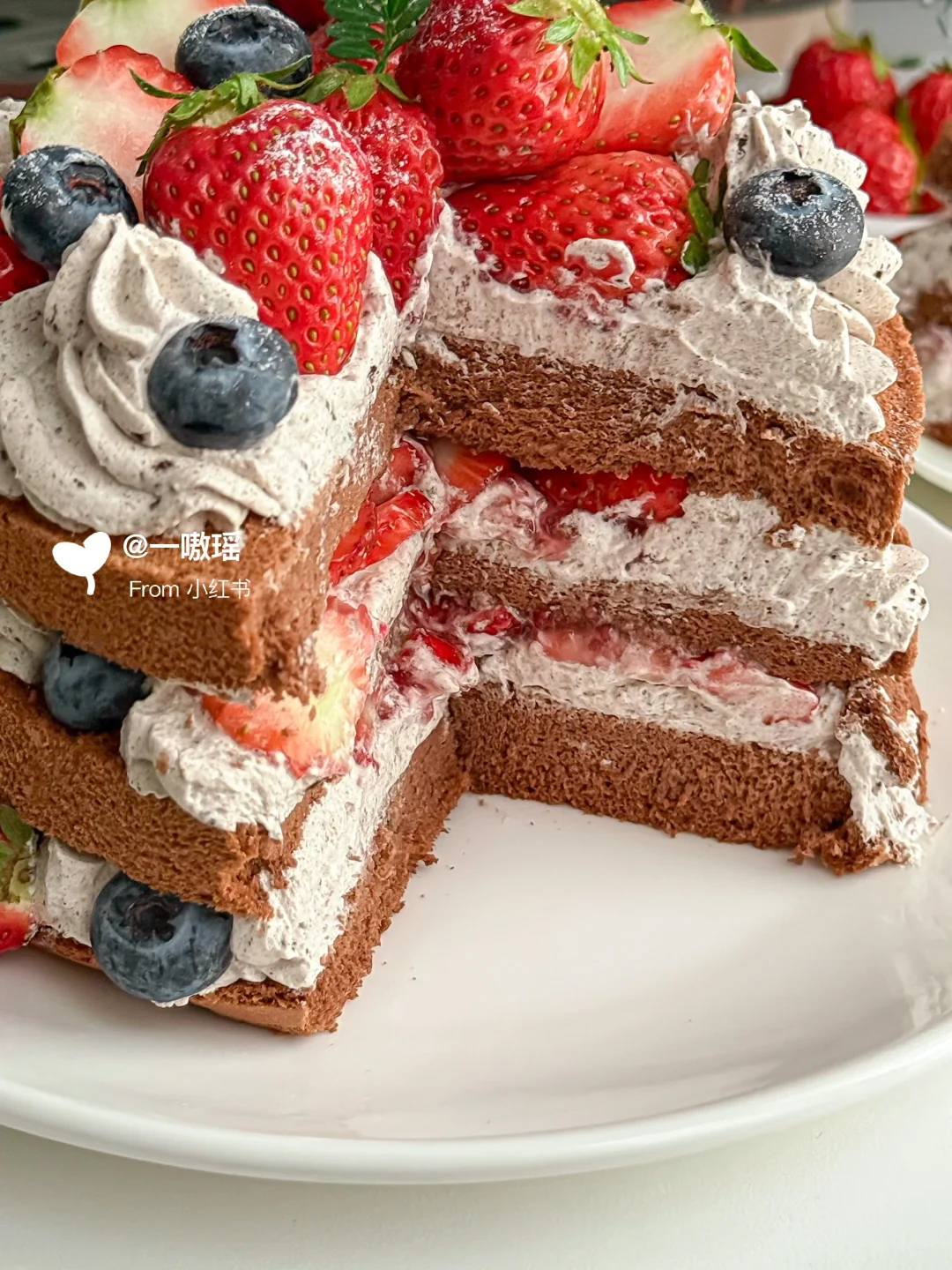 这次尝试巧克力戚风蛋糕🍫一口下去是浓郁的巧克力香啊🤤口感绵软,搭配奥利奥奶油和草莓🍓,层次丰富,馥郁清新,真的很绝!