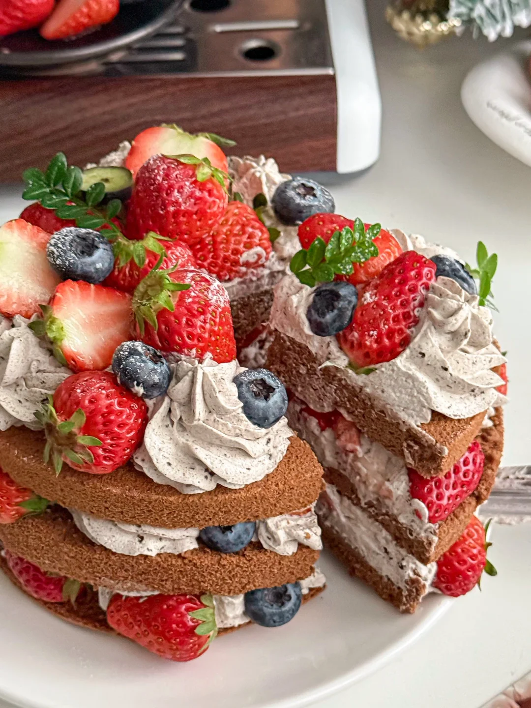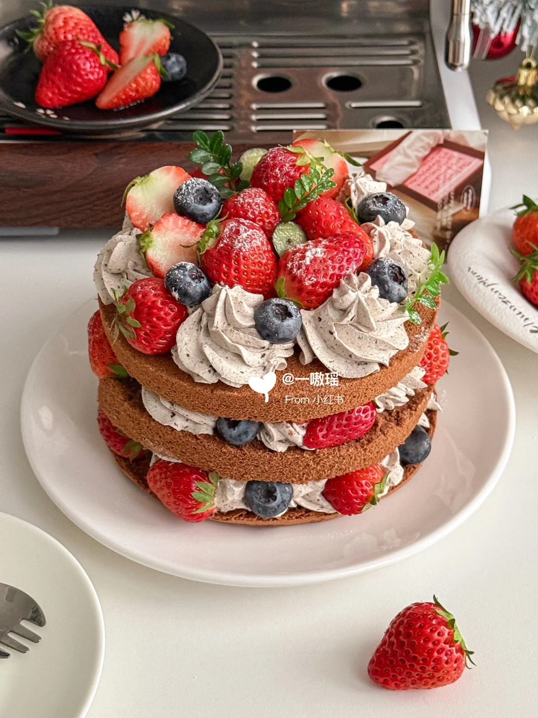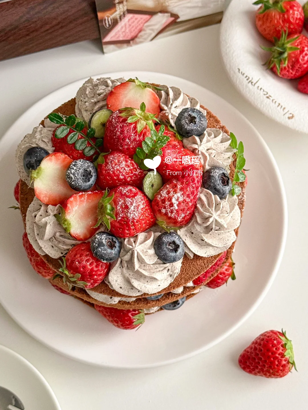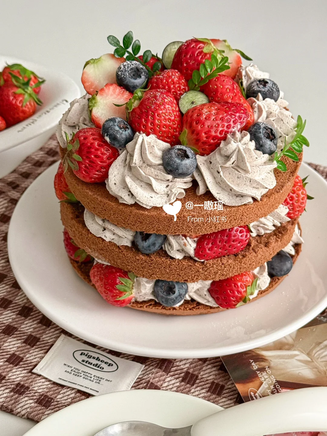 这次尝试巧克力戚风蛋糕🍫一口下去是浓郁的巧克力香啊🤤口感绵软,搭配奥利奥奶油和草莓🍓,层次丰富,馥郁清新,真的很绝!