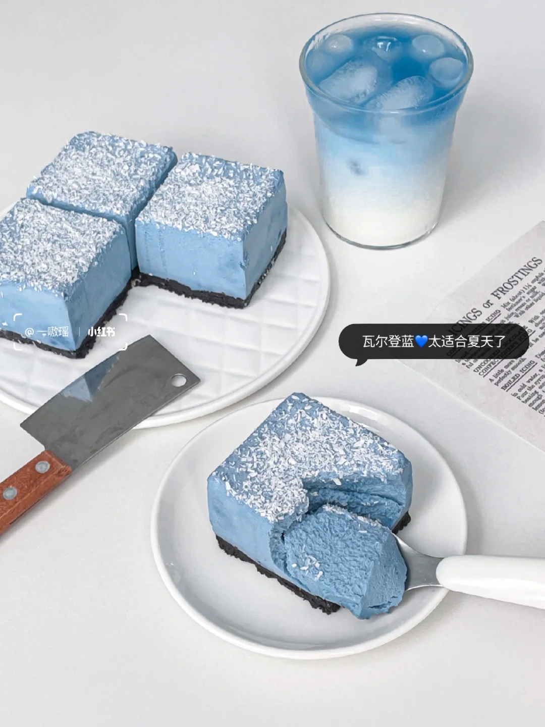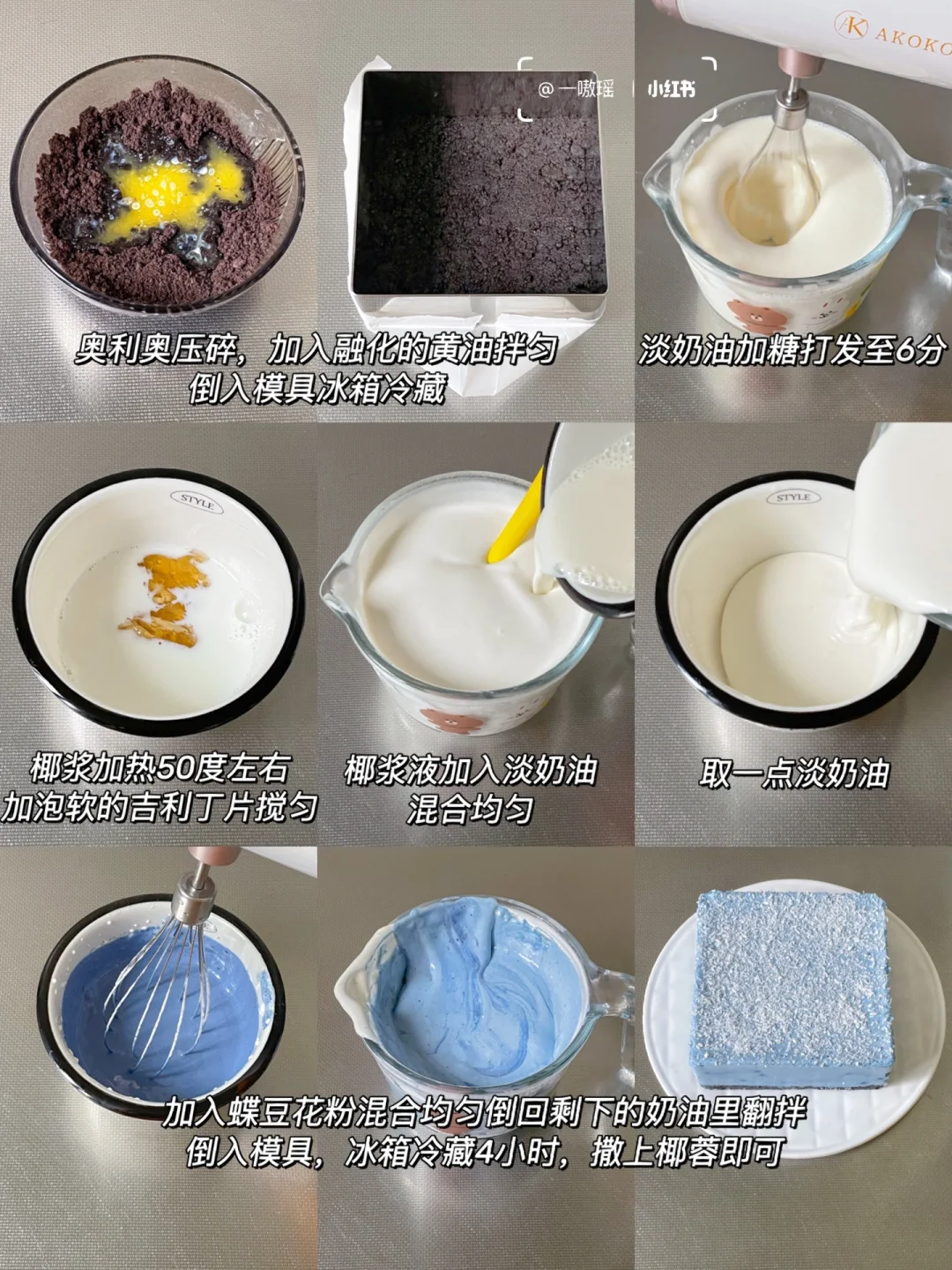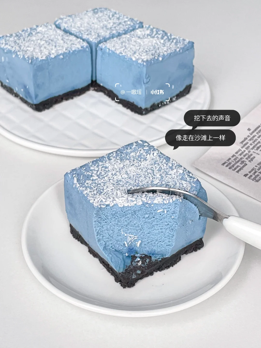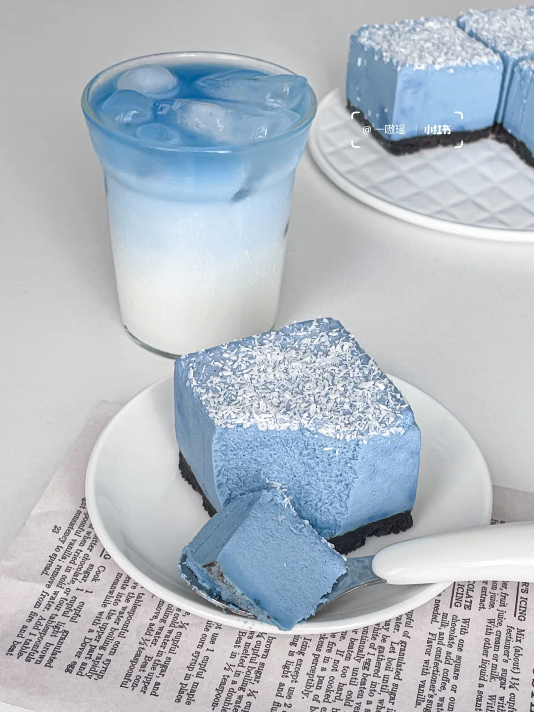 冰冰海蓝色椰香慕斯🌊 搅一搅就能做,简单快手小甜品,不需要烤箱很方便
