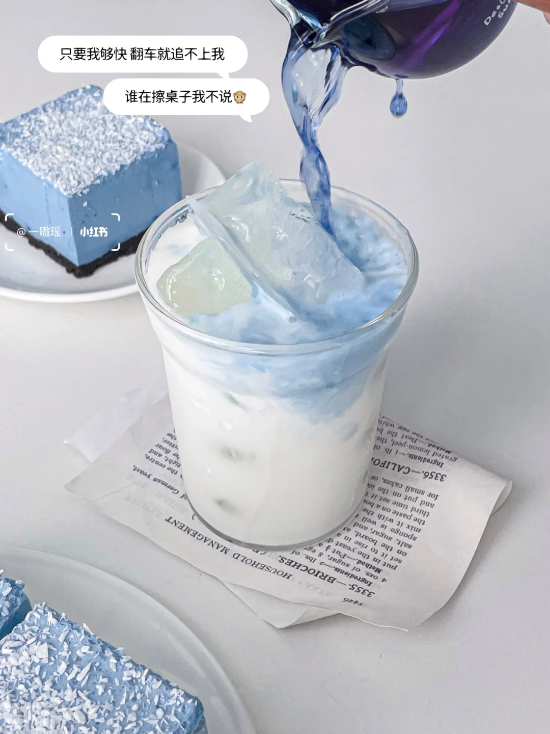 ▫️五朵蝶豆花用开水泡出蓝紫色倒入