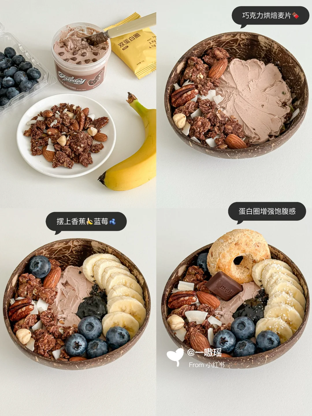 蓝莓+香蕉+黑巧+希腊酸奶+巧克力烘焙燕麦