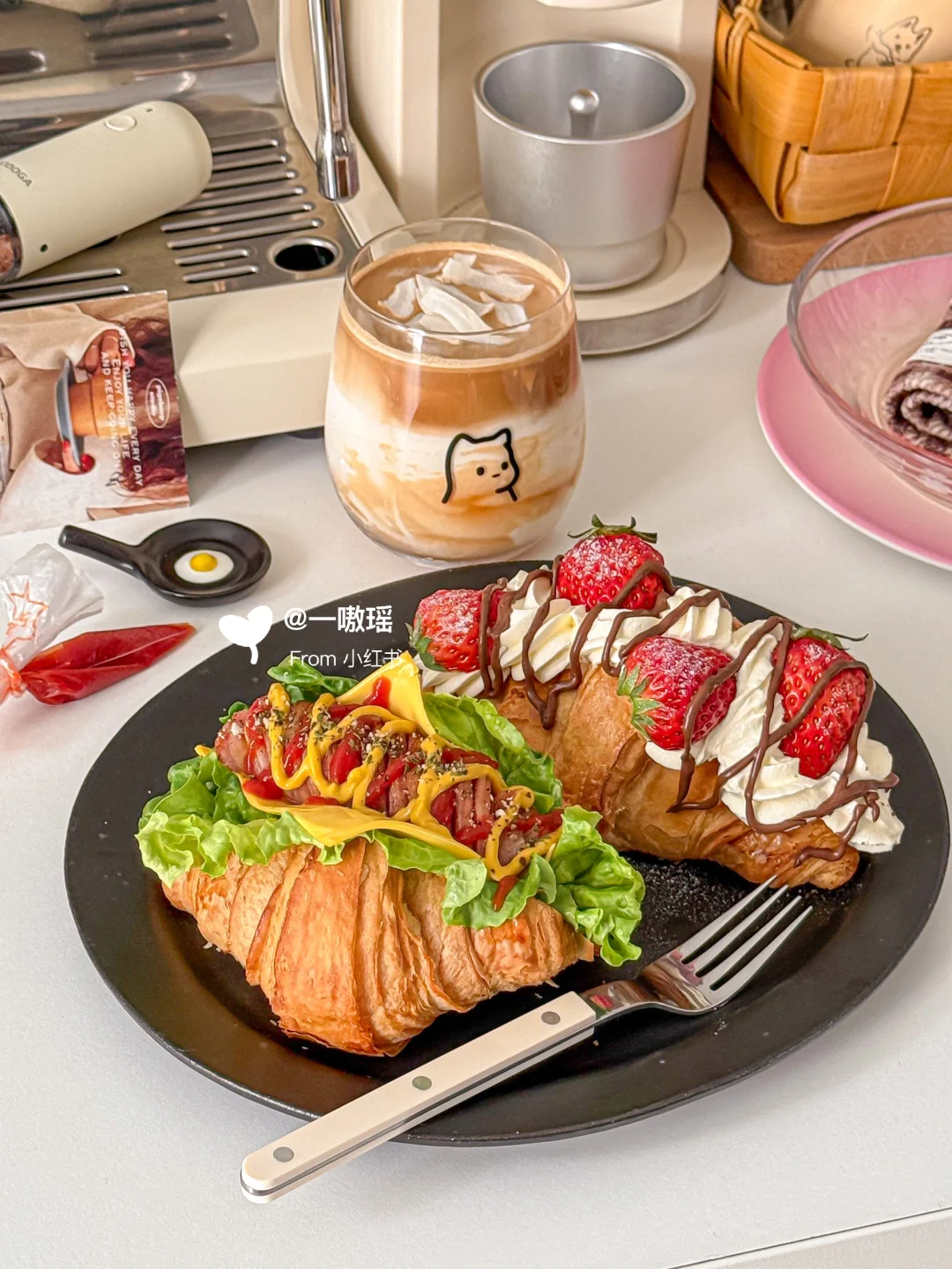 10分钟Brunch🥐好吃的可颂三明治☕️焦糖拿铁