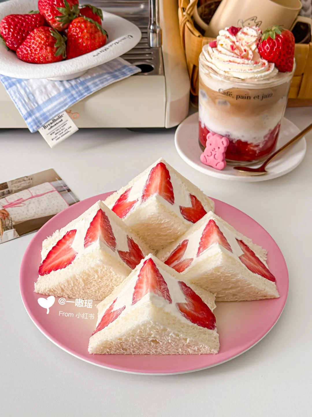 🍓10分钟元气早餐‼️草莓奶油三明治🍞✨