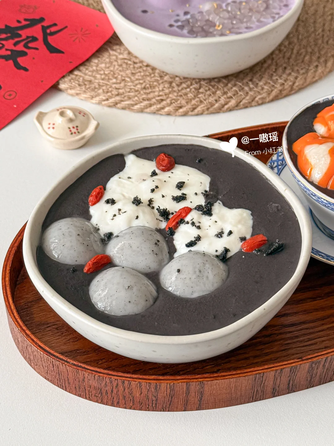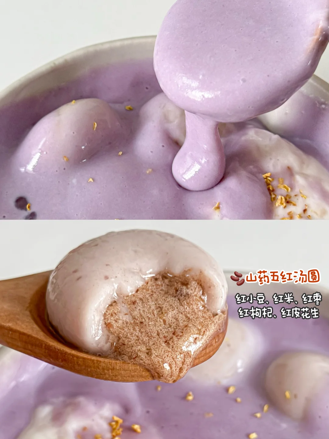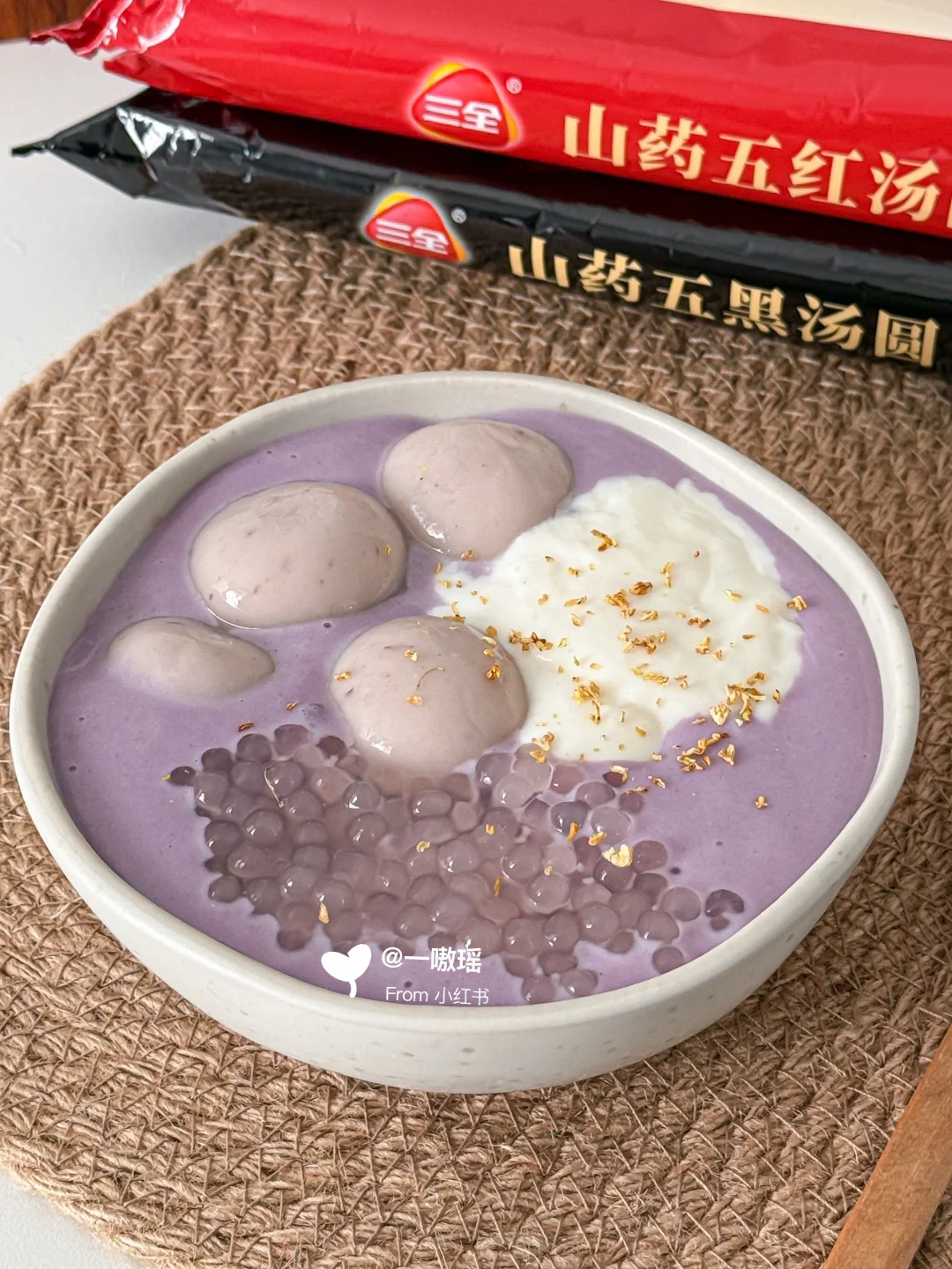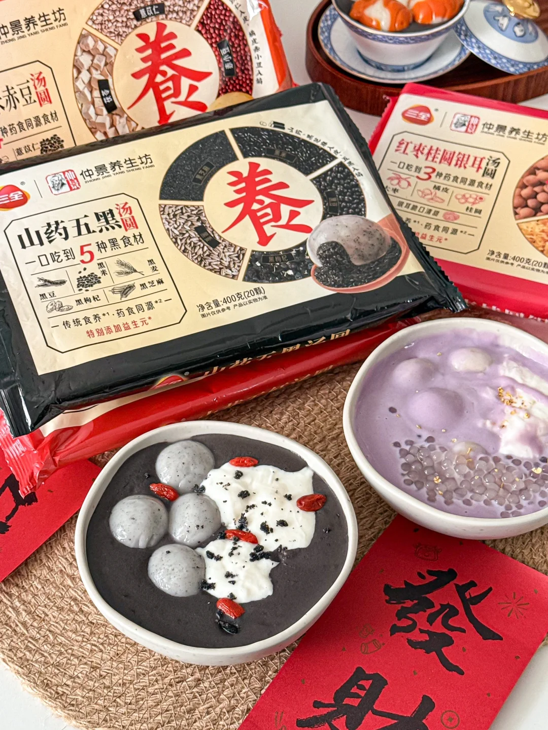 🍡汤圆用的是三全食养汤圆,山药五黑和山药五红,一口吃到五种食材,还有茯苓薏米赤豆、红枣桂圆银耳两种口味,感受食材本身带来的滋养🫶🏻