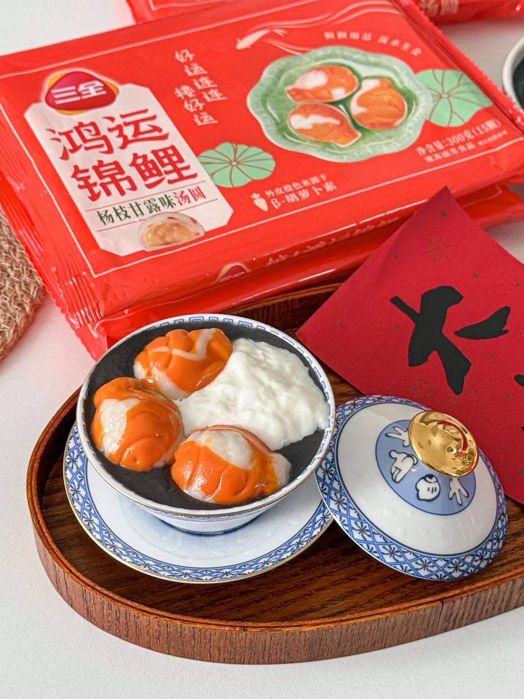 🐟三全新出的锦鲤汤圆,胡萝卜素调成的橘色锦鲤造型超可爱~正好临近过年🧨吃锦鲤汤圆,接好运连连😍