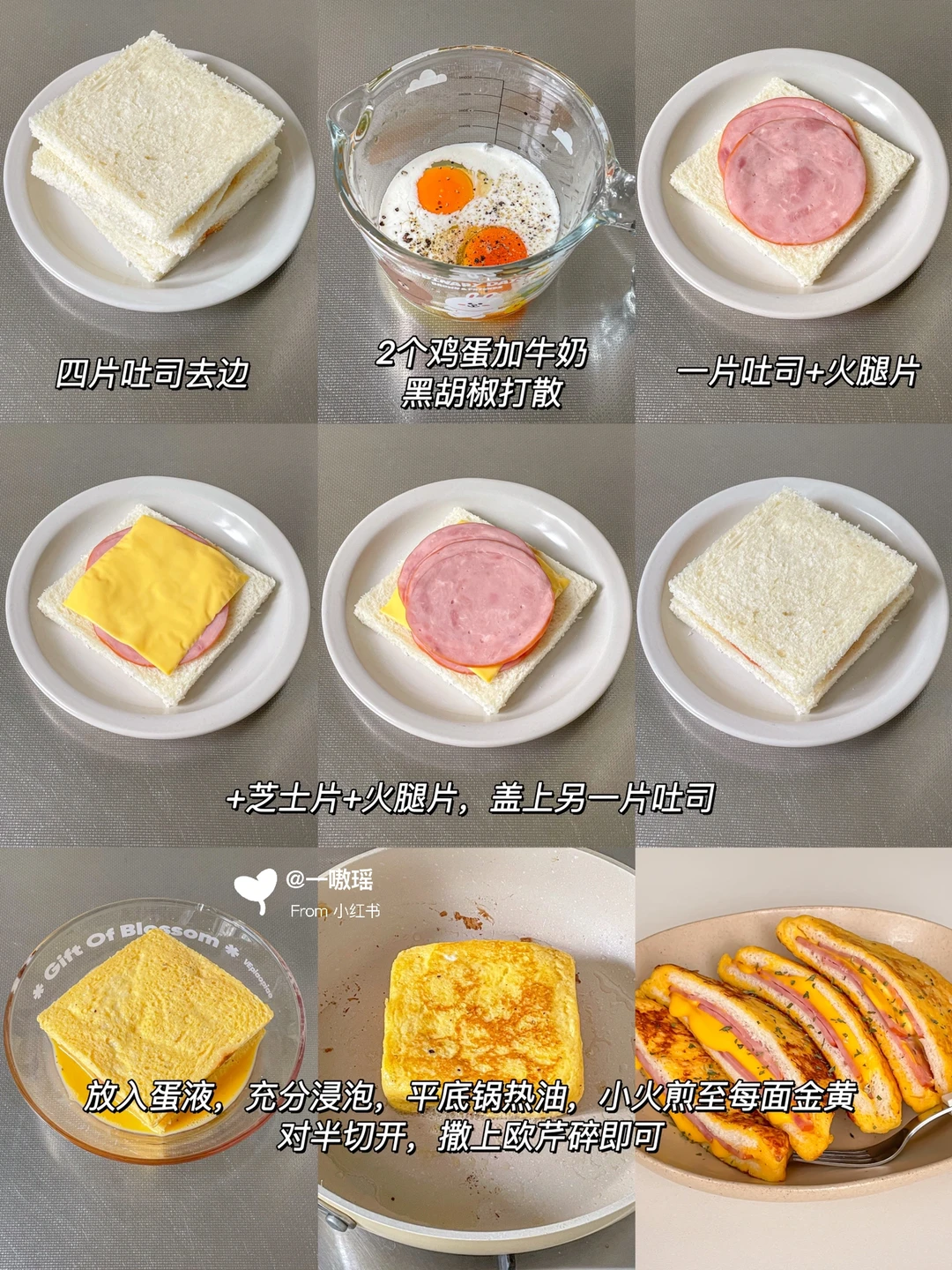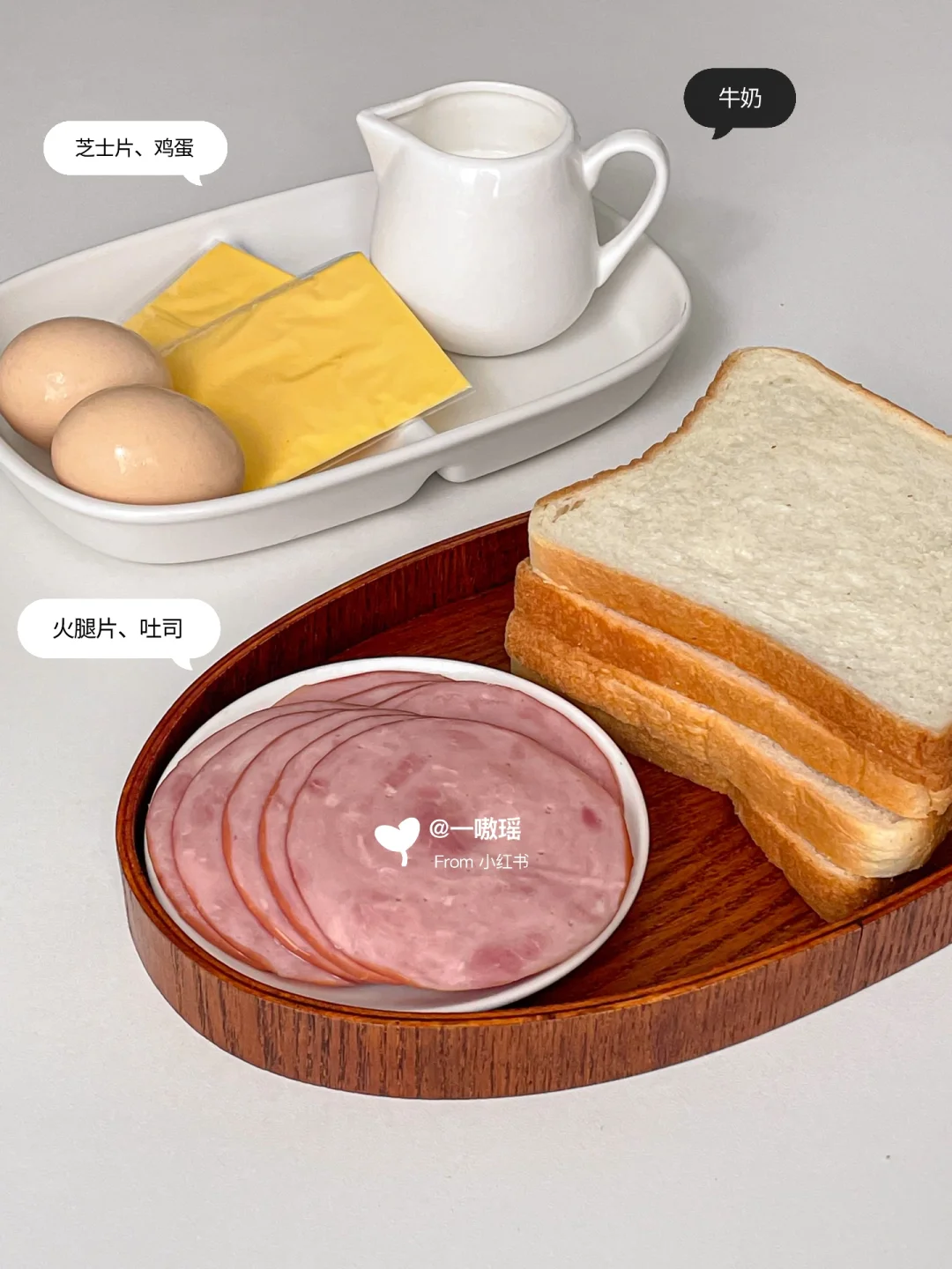 四片吐司 火腿 两个鸡蛋 牛奶 两片芝士片