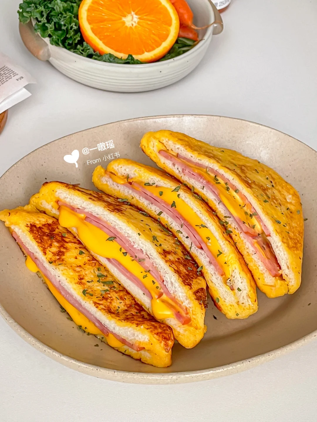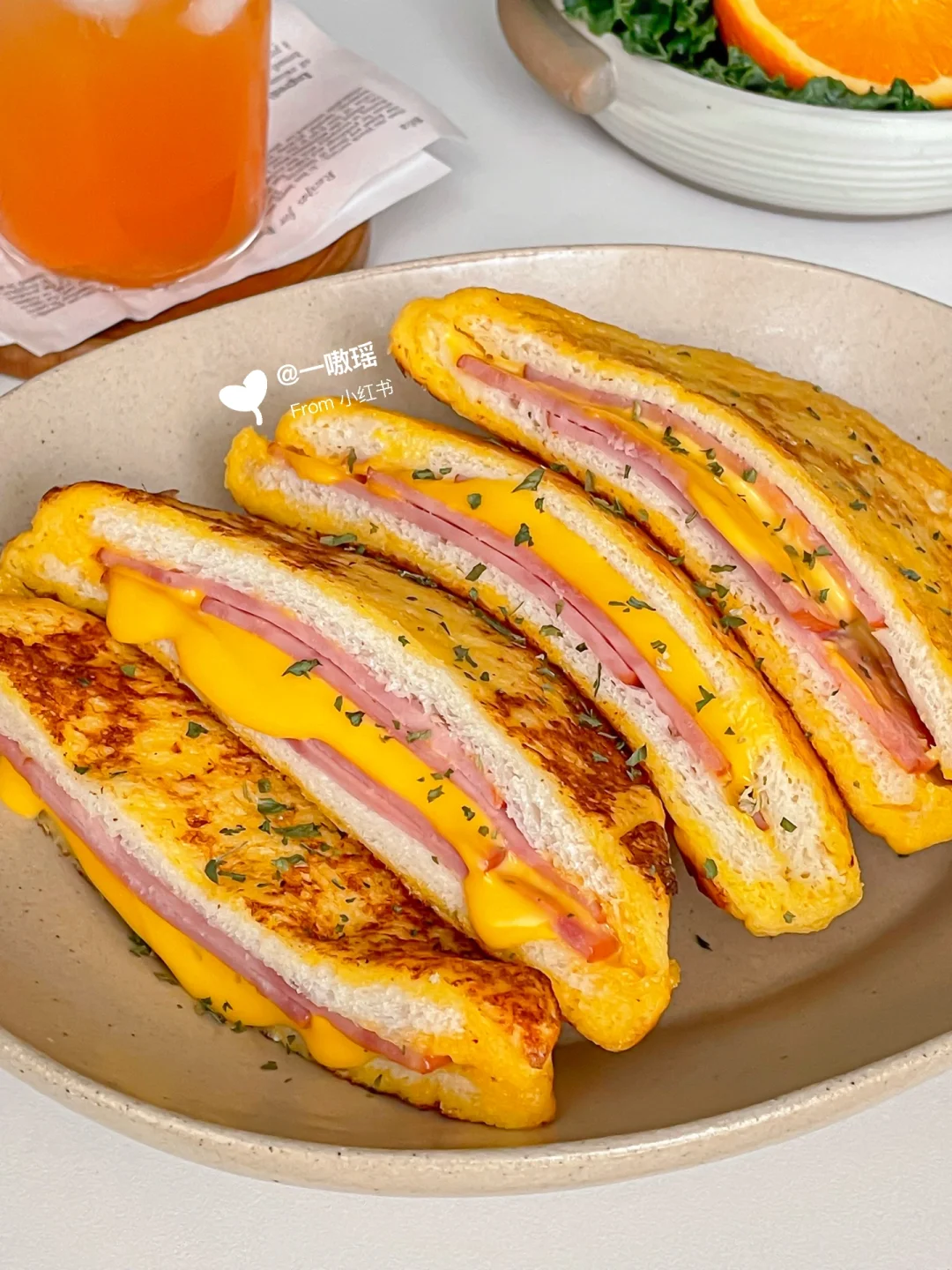 ▫️一片吐司+火腿片+芝士片+火腿片,盖上另一片吐司