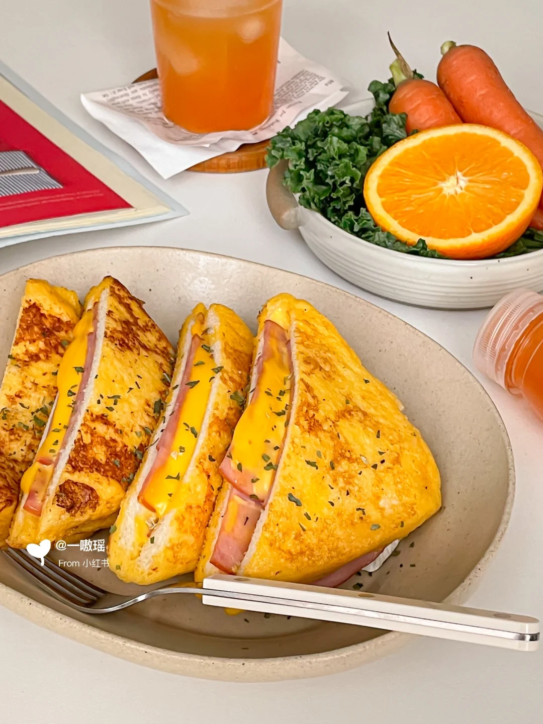 吸饱牛奶蛋液的吐司煎完之后软嫩香甜,奶fufu的