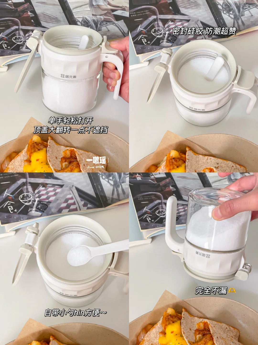 👀快看!挖到了宝藏调料罐🧂乳白色温柔又高级,可以单手轻松开盖太方便了,体验感up~ 最主要完全密封防潮,对南方的孩子很友好[鼓掌R]