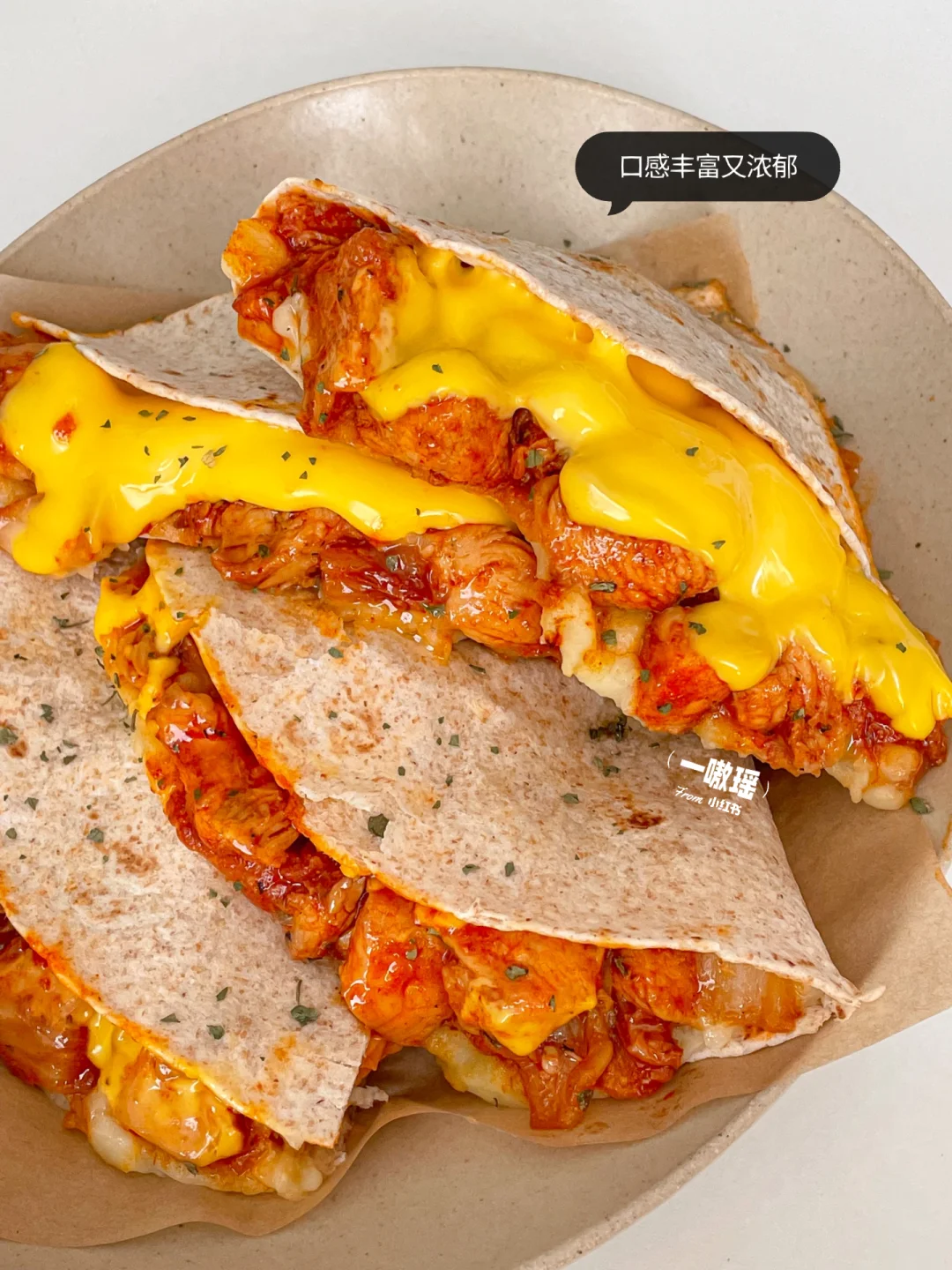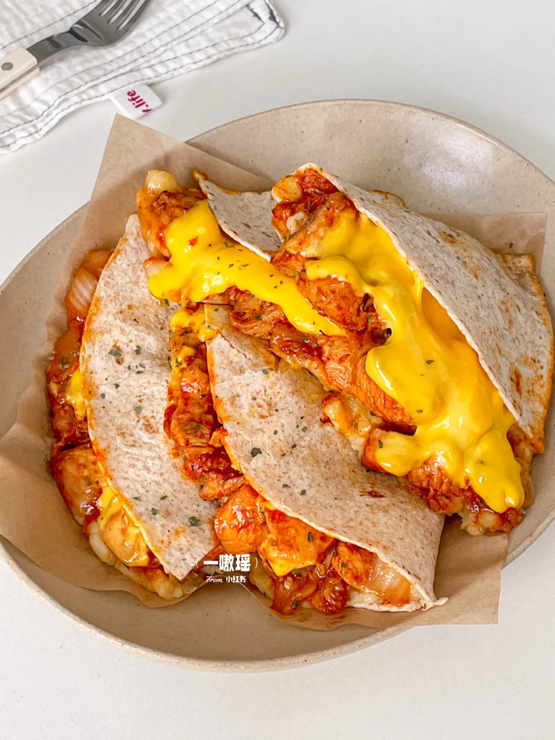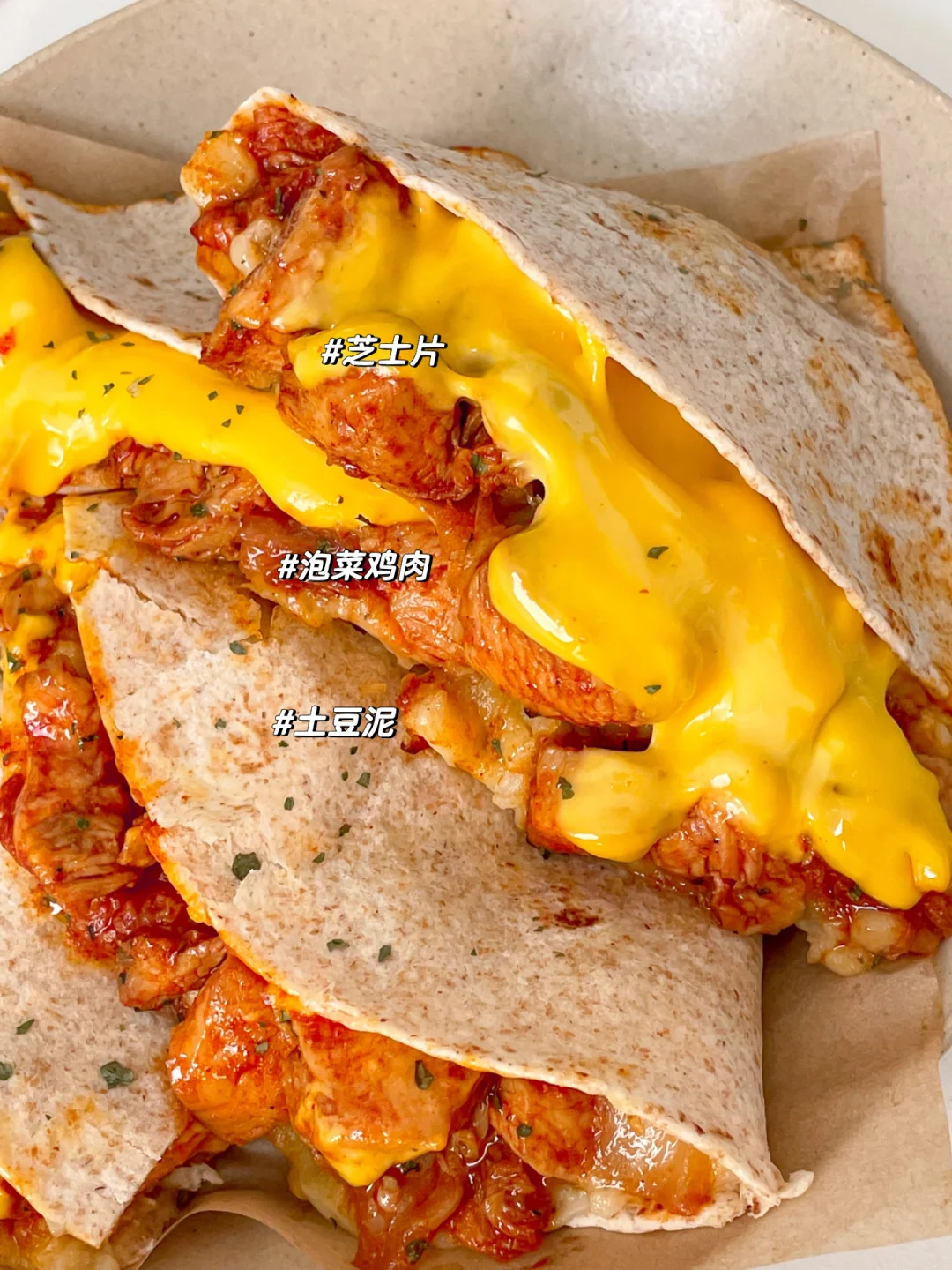 今天做土豆泥泡菜鸡肉芝士卷饼🌮绵软的土豆泥,搭配自制的泡菜鸡肉酱,口感丰富又浓郁😍