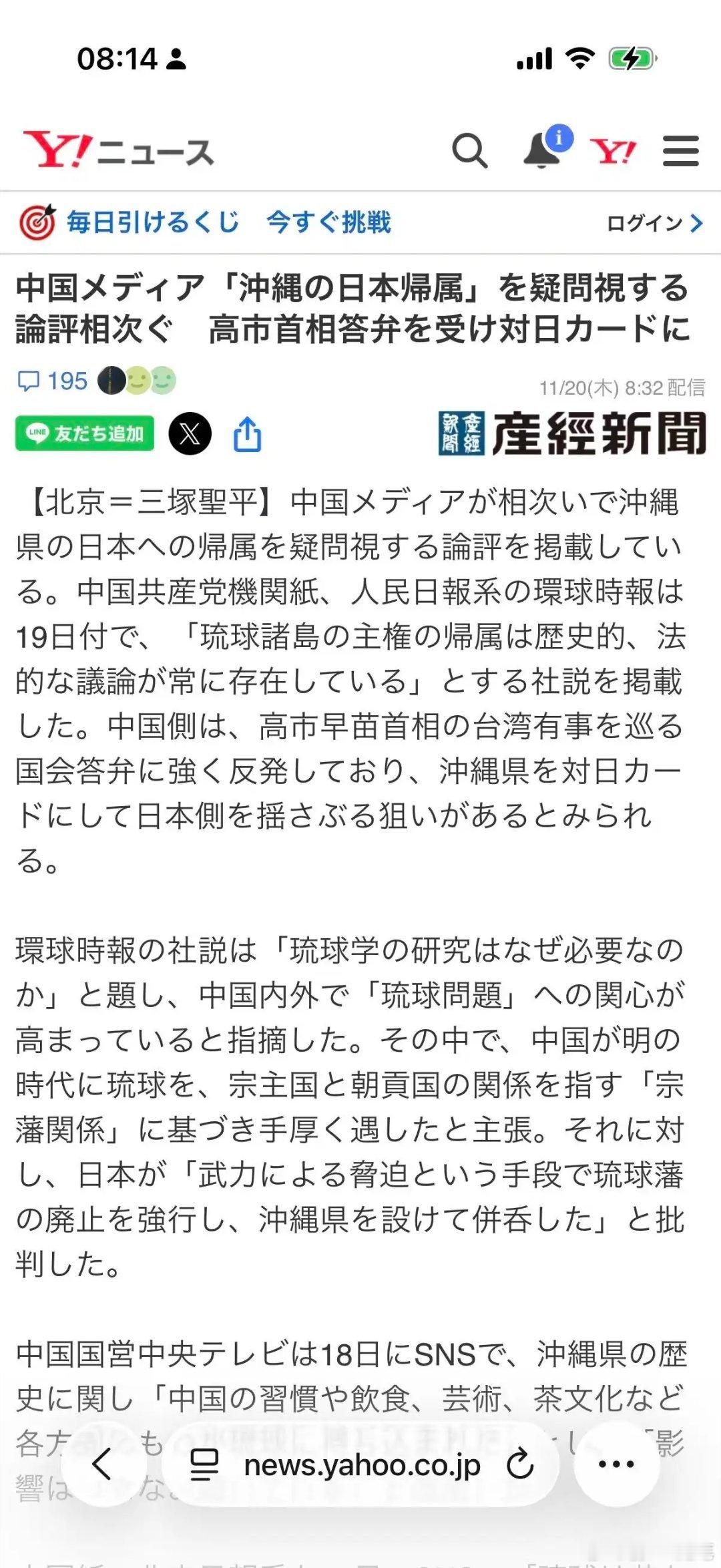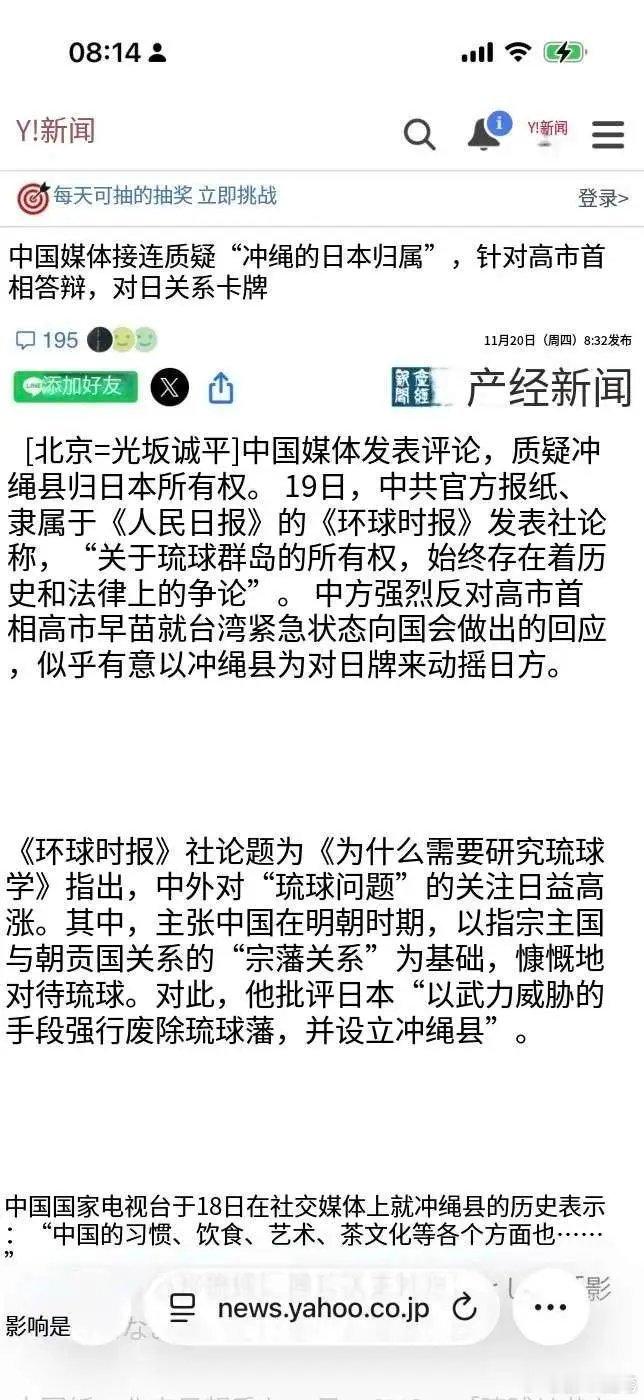 日本终于担心中国要用琉球群岛来制衡日本首相高市早苗介入台海谬论了。琉球群岛在法律