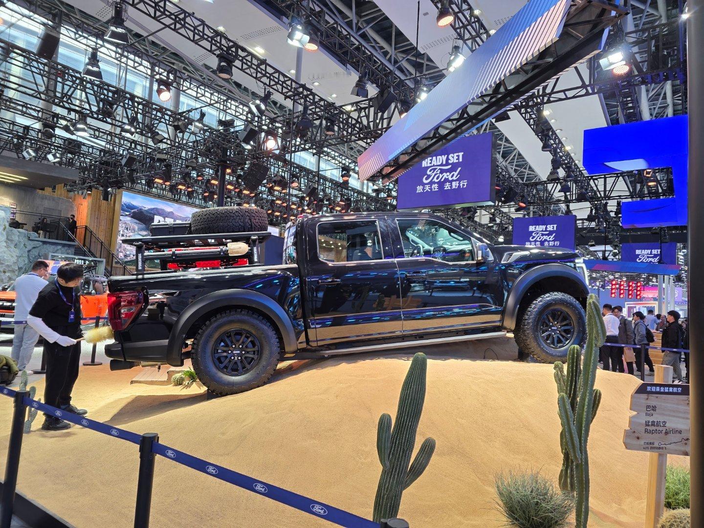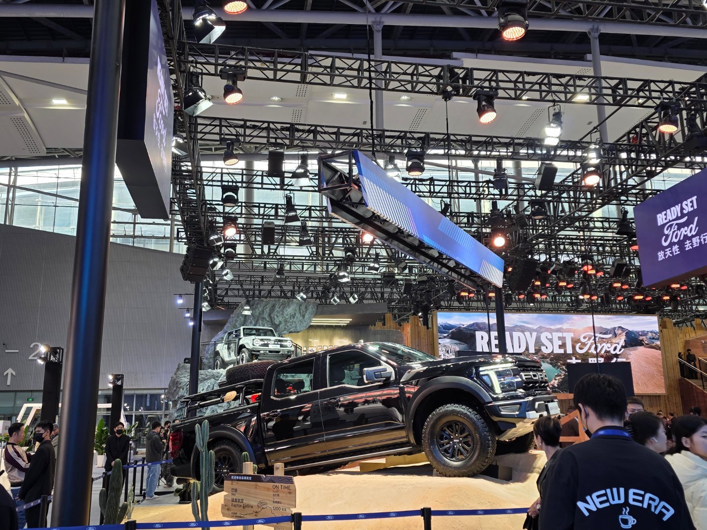 逛路过福特展台,一眼就被全新F-150猛禽给吸引了!魁梧身形配着霸气前脸,硬派越野范儿十足。不过话说回来,这么大的车身搭这么大的轮毂,油耗得多高?一看就是有钱人的大玩具!