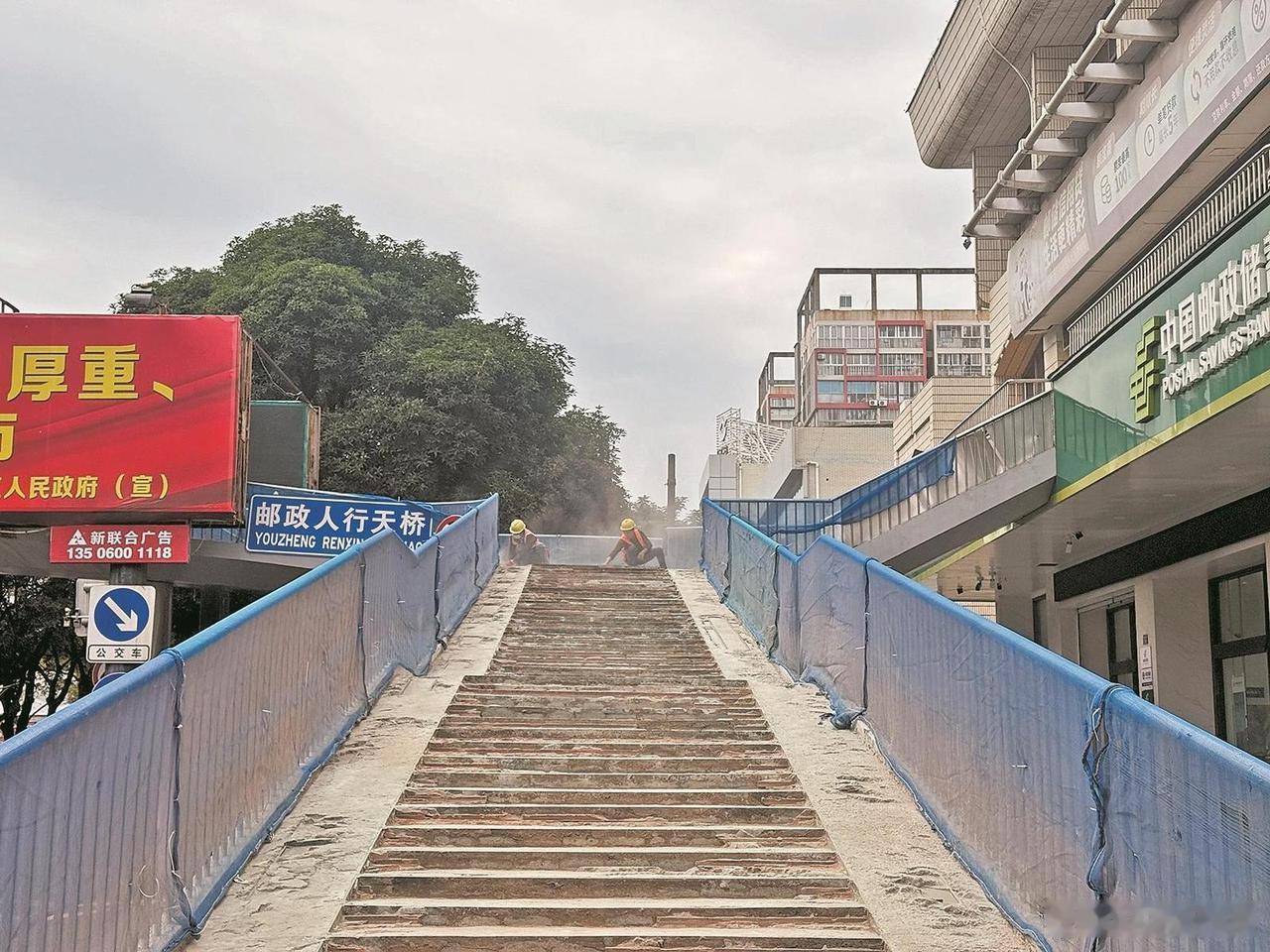 【泉州中心市区人行天桥改造工程(二期)启动】记者从泉州市城管局市政工程中心了解到,为破解部分人行天桥雨天易滑难题、升级市民过街安全环境,市政部门在完成中心市区首批8座天桥改造后,于近日启动第二批天桥的升级工作。此次涉及的5座天桥均位于人流车流密集路段,总工期约90天,预计2026年春节前完工。 昨日上午,记者在温陵路与九一街交叉口人行天桥施工现场看到,蓝色施工围挡已规范围合整座天桥,醒目的提示牌“天桥施工请绕道通行,给您带来不便敬请谅解”引导市民分流。几名工人正俯身对台阶进行清理作业,为后续防滑地砖更换做准备。施工区域与通行道路通过围挡实现物理隔离,桥下车辆、行人通行秩序井然,最大限度降低了施工对交通的影响。 据了解,今年8月首批完成改造的8座天桥投入使用后,迅速收获许多市民好评。中心市区人行天桥改造工程(二期)涉及宝洲街万达人行天桥、福医大附属第二医院东海分院人行天桥、山海路立交人行天桥、温陵路与九一街交叉口人行天桥和迎津街人行天桥等5座天桥,均位于人流车流密集的重要路段。二期工程总工期约90天,施工内容包括将地砖更换为荔枝面刻槽防滑石砖、更换老化或损坏的天桥设施等。