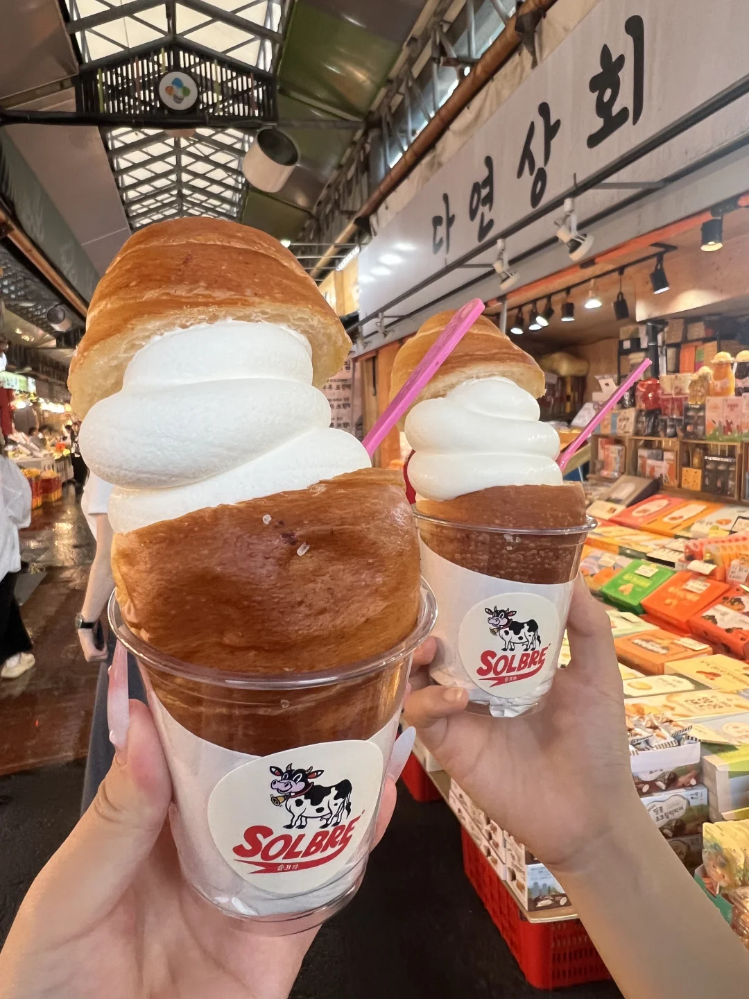 1️⃣牛岛花生冰淇淋 2️⃣超可爱达克瓦兹(很好吃!不会很甜! 3️⃣umu 胖嘟嘟布丁 4️⃣云朵饼干☁️ 5️⃣solbre 牛角包冰淇淋 6️⃣composer 红豆黄豆粉年糕冰 7️⃣br 薄巧!! 8️⃣앨리스 抹茶雪山芝士冰 9️⃣abebe 橘子冰面包🍊 🔟伦敦贝果博物馆 奶酪贝果确实好吃! 1️⃣1️⃣市场里随便买的橘子麻薯