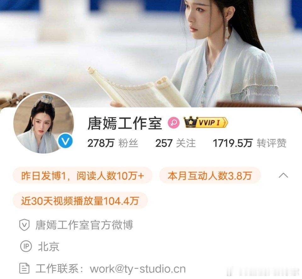 一般这种账.号不都是工作人员管理的嘛唐嫣的IP显示在上海但唐嫣工作室的IP显示在北京应该是负责账.号的人不同吧罗晋家里人都特别重视喜爱唐嫣,一向严厉的罗晋父亲在对儿子儿媳的婚姻上都是开明欣慰的,可惜啊…罗晋这一年都在北京照顾父亲,唐嫣则在上海照顾女儿,两个人只是分工顾全家庭。最近传唐嫣罗晋婚变的人都安静点吧,家里人已经够难过的了,这种时候应该克.制过.度关注,给予他们处理家庭事务的私人空间。