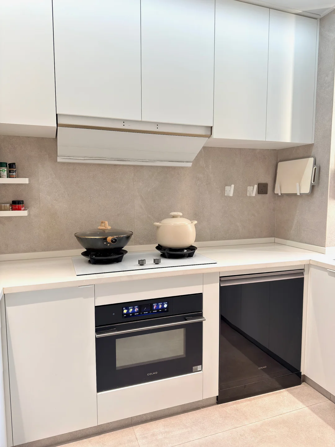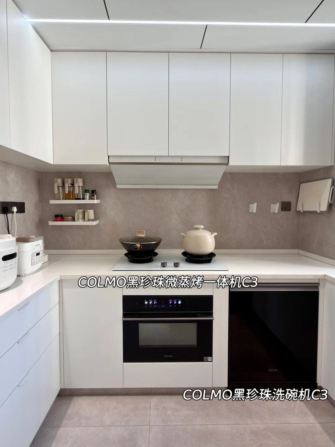 我家🏠建面:140平,套内118平 自己设计自己找工人 耗时6个月 最后硬装15w、软装10w装出了自己想要的极简风🍃 - 最近很多小宝想看我家厨房 我家厨房仅有5平米 为了让厨房看起来更显大 我家厨电都是选择了全嵌产品 之前住的家总觉得厨房小、台面乱 想添个家电都得纠结半天颜值和占地 这次新家装修,我直接就在厨房C位安排上 这台COLMO黑珍珠微蒸烤一体机C3 颜值高不占地,告别“电器排排站”[萌萌哒R] - 它不仅是一台微波+蒸+烤+炸+炖5合1的全能王 还是一台能读懂食材心声的微蒸烤一体机 它家独创的新风控湿技术,通过温度/湿度/时间三维调控 彻底告别“不同食材同种火候”的灾难 ▪️排湿炸烤:鸡翅烤出琥珀光泽!表皮“咔嚓”脆,内里肉汁却被牢牢锁住 ▪️补湿嫩烤:整鸡烘烤时自动补蒸汽,切开瞬间爆汁不柴 ▪️控湿焙烤:欧包党狂喜!外皮酥脆内里蓬松,再也不变塌陷包子 ▪️控湿空气炸:薯条脆度自由掌控!开关湿度就能切换软嫩/酥脆两种模式 控湿细雾蒸也是颠覆体验~ 双孔直喷细雾蒸汽,渗透力直接拉满! 蒸鲈鱼鱼肉嫩过豆腐,蒸馒头蓬松柔软~ 最感动的是:连续蒸煮不用中途加水!积水减少86.6%,再也不用担心机器泡水锈蚀 现在它简直是我烹饪的全能帮手 解冻肉品不流血水、发酵面团恒定温湿、低温烘果干零失手 上下异温烤,上烤蔬菜下烤牛排,同时出锅不串味 自带自清洁+杀菌消毒,用完机器内部干干净净,真的是懒人福音啊~[斜眼R] - 洗碗机也是选择了COLMO黑珍珠洗碗机C3,我家的聚餐救星,18套大容量,130件餐具轻松洗。洗完超干净,AI仿生手洗黑科技,碗底硬饭、烤盘焦污都不怕,边边角角都锃亮!而且通过德国认证,连收藏级餐具都能放心进,呵护率99.67%~洗完后餐具干爽无痕,内壁也不潮湿。杀菌率高达99.99999%,宝宝餐具放进去超安心~我选了个跟我家装修很配的面板,颜值直接拉满![派对R] - 小厨房只要用心,就能发挥大作用 虽然小但功能满满 厨电选择一整套全嵌产品 高级美观又实用~ 每天做饭幸福感满满✨