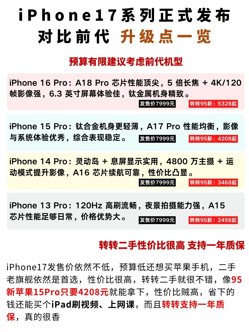 iPhone17系列升级点都有哪些?两张图搞清楚