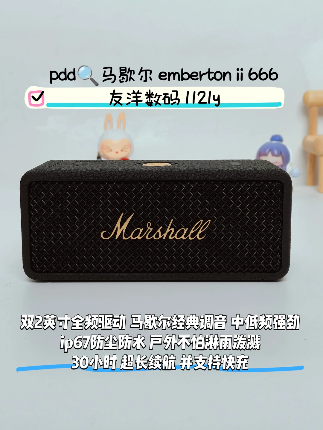 1️⃣双2英寸全频驱动,马歇尔经典调音,中低频强劲