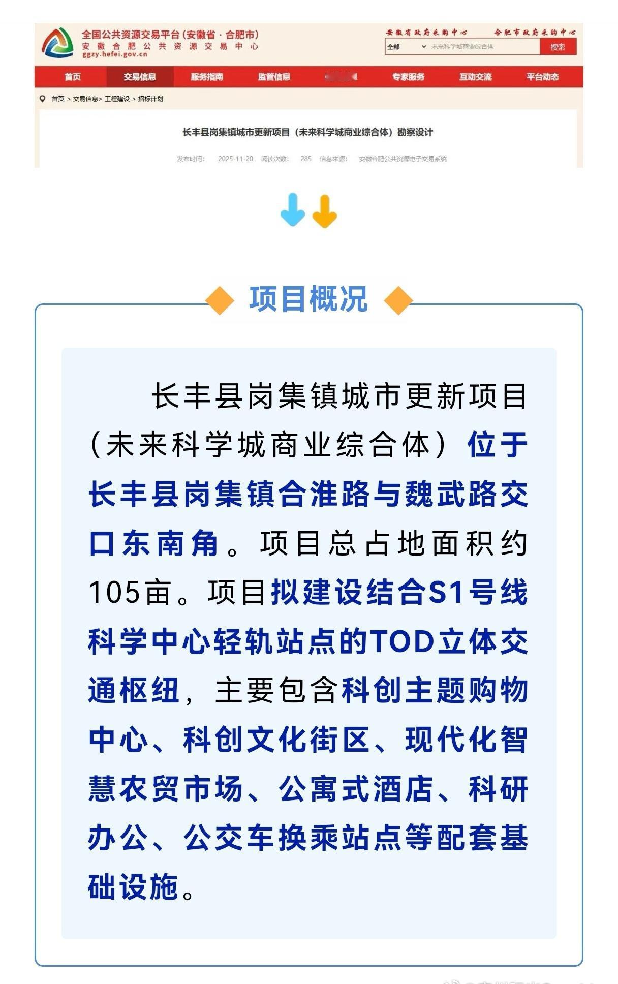 长丰拟新建未来科学城商业综合体! 长丰县岗集镇城市更新项目(未来科学城商业综合体