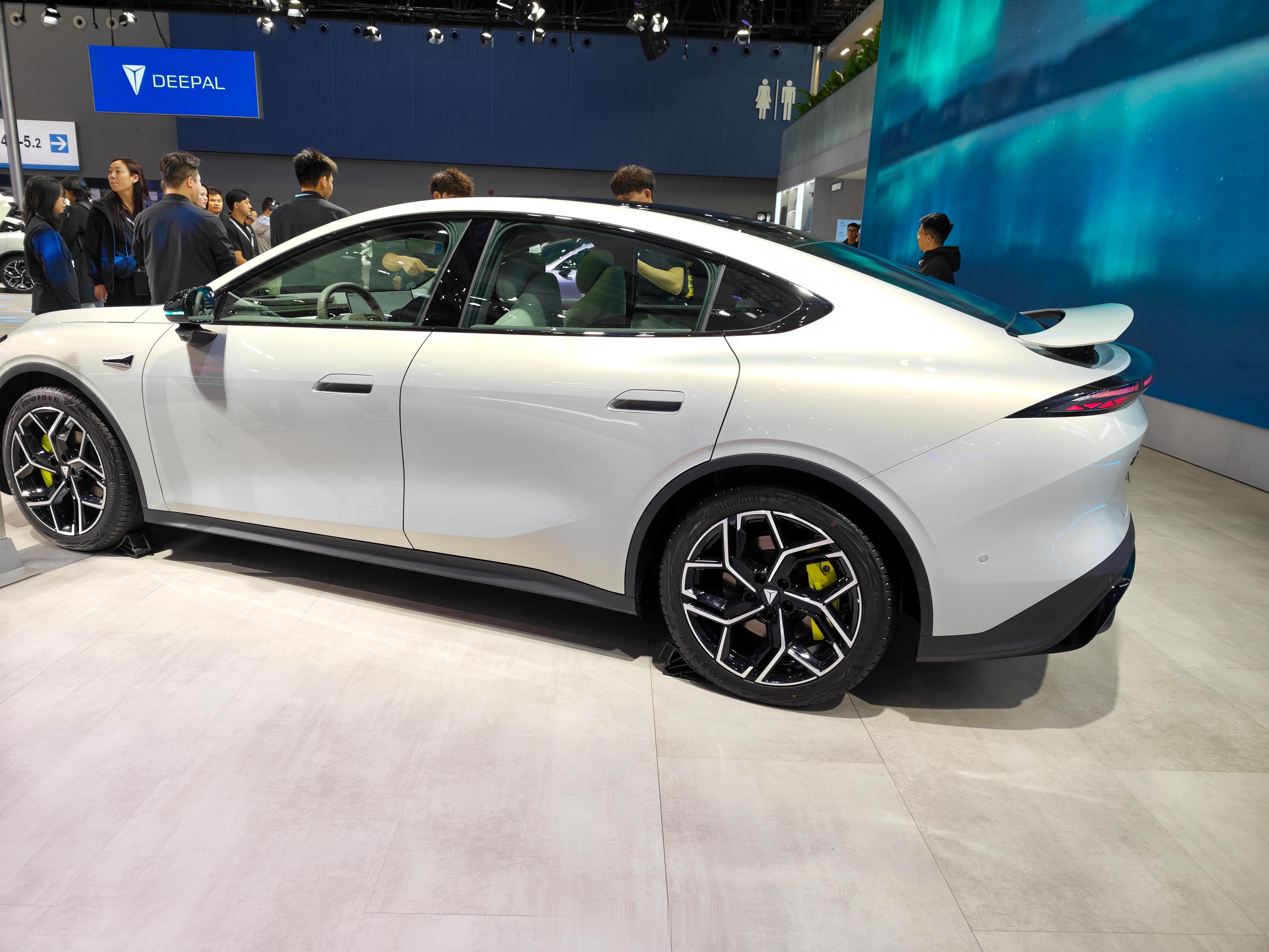 深蓝展台,L06 实车比线上看帅多了,无框车门、电动尾翼,特别是这个前脸,辨识度很高。配置前两天的发布会上就说了,13.29 万起,标配激光雷达,全球首发天玑座舱 S1 Ultra 3 纳米车规级芯片,安兔兔跑分 1637481 分,全系宁德时代磷酸铁锂电芯,超跑同款磁流变悬架。