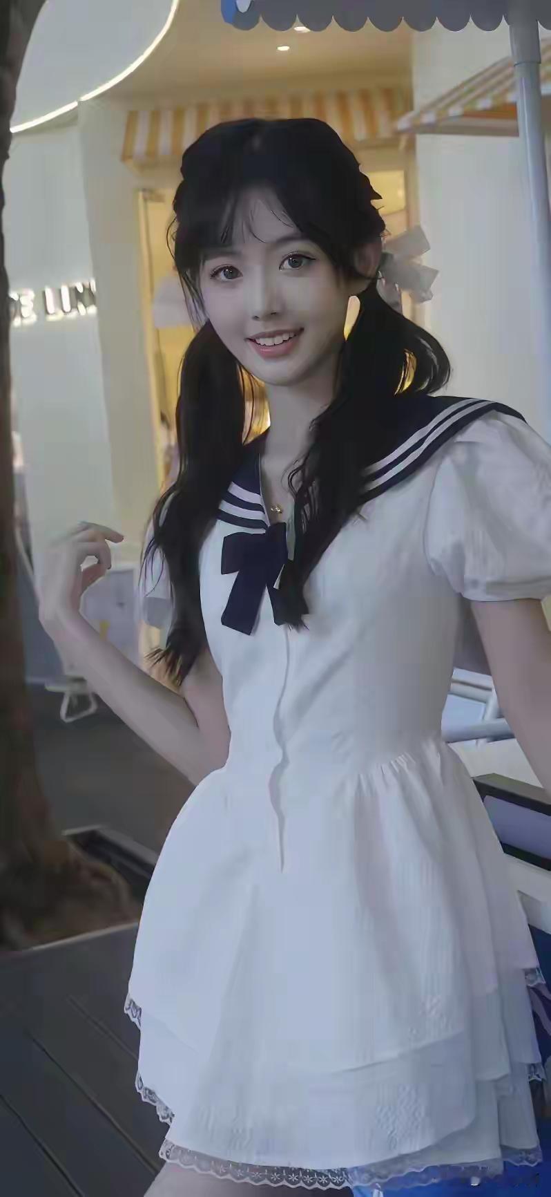 白衫黑裙的清甜,在笑涡里打转 心动美女时尚穿搭