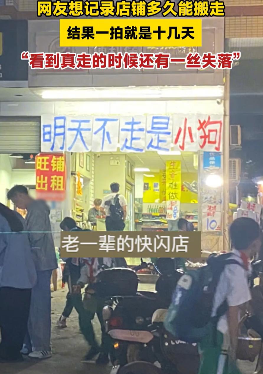 广东,一女子发现楼下的便利店挂横幅清仓甩卖,说是要当晚搬走,结果第二天继续开门营业,还换了新的横幅,女子觉得有趣,就连续拍了十几天,结果等店铺真的关门时,女子心里反倒还有点失落了。网友:什么?居然会真的走啊! 十二天前,这家开了三年的便利店突然挂起大红横幅,喇叭里反复喊着“今晚交铺,全场清仓,马上搬走”。林女士当时刚买完酱油出来,听见这话差点笑出声。街头巷尾“最后三天”喊一年的套路见多了,谁会真信?她特意绕到门口看了眼,老板正踩着梯子换横幅,额头上全是汗,见人就咧嘴笑,那模样倒挺实在。 结果第二天早上,林女士路过时差点乐喷,店铺照常开门,横幅换成了“车已在途,打包就走”。她掏出手机拍了张照,发到公司群里调侃:“这老板套路挺新,明天该说‘票已买好’了吧?”群里同事全被逗乐了,有人让她每天更新,俨然成了“追更现场”。从那天起,林女士每天下班都特意绕路过来,就为看老板又编了啥新文案。 这老板像是开了“文案外挂”,横幅内容天天不重样。从信誓旦旦的“今晚10点准时撤”,到紧迫感拉满的“最后两小时,给钱就卖”,再到后来有点气急败坏的“明天不走是小狗”,每一条都戳中笑点。林女士把这些横幅照片整理成了“清仓连续剧”,连小区里跳广场舞的阿姨都知道,“那家会讲笑话的便利店又换招牌了”。 大家都抱着看笑话的心态追更,没人真觉得老板会走。林女士偶尔也会买些东西,洗衣液、孩子的零食,价格确实比平时便宜点。她还跟老板聊过两句,老板说自己在这开了三年,邻里都熟,舍不得走,但房租涨得实在扛不住。林女士当时只当是清仓的话术,笑着说“您这戏演得够投入”,老板也没辩解,只是给她多塞了颗糖。 直到第五天,林女士发现货架上的牛奶少了一半,平时摆满的薯片区空了一大块。她随口问老板咋不补货,老板说“清完就走,补啥呀”,手上却在慢悠悠地整理剩下的纸巾。那时候她还是没往心里去,觉得是老板故意制造“库存紧张”的假象。倒是群里有个做零售的同事提醒她:“真清仓看货架就知道,假的永远补不完货。” 接下来的几天,货架上的空缺越来越大。原本堆得满满的日用品区,只剩零星几瓶洗发水;零食架上只剩些临期的饼干,老板也不再每天爬梯子换横幅,最新的一条挂了三天——“告别南沙,谢谢关照”。林女士拍照片的时候,发现老板没再站在门口吆喝,而是坐在收银台后,盯着空荡荡的货架发呆,阳光照在他身上,看着有点落寞。 她把这张照片发到网上,配文“清仓连续剧快大结局了?”。以前评论区全是“哈哈哈”,这次却有人说“看这货架,怕是来真的”。还有住在附近的街坊留言:“昨晚看到老板在搬收银机,好像是真要走”。林女士心里咯噔一下,这才后知后觉地想起老板说过的话,想起他给的那颗糖,突然有点不是滋味。 可她还是抱着一丝侥幸,觉得老板说不定还会换个新横幅。直到今天下班,看到紧闭的卷闸门,她才彻底慌了神。她把店铺关门的照片发到网上,没过多久评论就炸了,最扎眼的就是那句“什么?居然会真的走啊!”。好多网友说跟着她追更了十几天,还等着看老板“食言”,没想到是真结局。 林女士站在店门口好久,风把地上的价签吹得沙沙响。 以前觉得这是场热闹的骗局,现在才明白,那些看似玩笑的横幅,是老板在离别前最后的体面。他用幽默冲淡了无奈,也给街坊们留下了一段有趣的回忆。林女士翻开手机相册,十二张横幅照片连在一起,像一部短小的纪录片。那个总笑着帮她找零的老板,那个每天都有新乐子的便利店,就这么突然退场了。 回家的路上,林女士绕到了另一家超市买洗衣液。货架满满当当,却再也没有那种每天都能盼着“新剧情”的期待。她突然懂了,让人失落的不是少了一家买东西的店,而是习惯了的热闹突然消散,是那些没说出口的“再见”,最终都变成了手机里的旧照片。 信息来源:海口观察