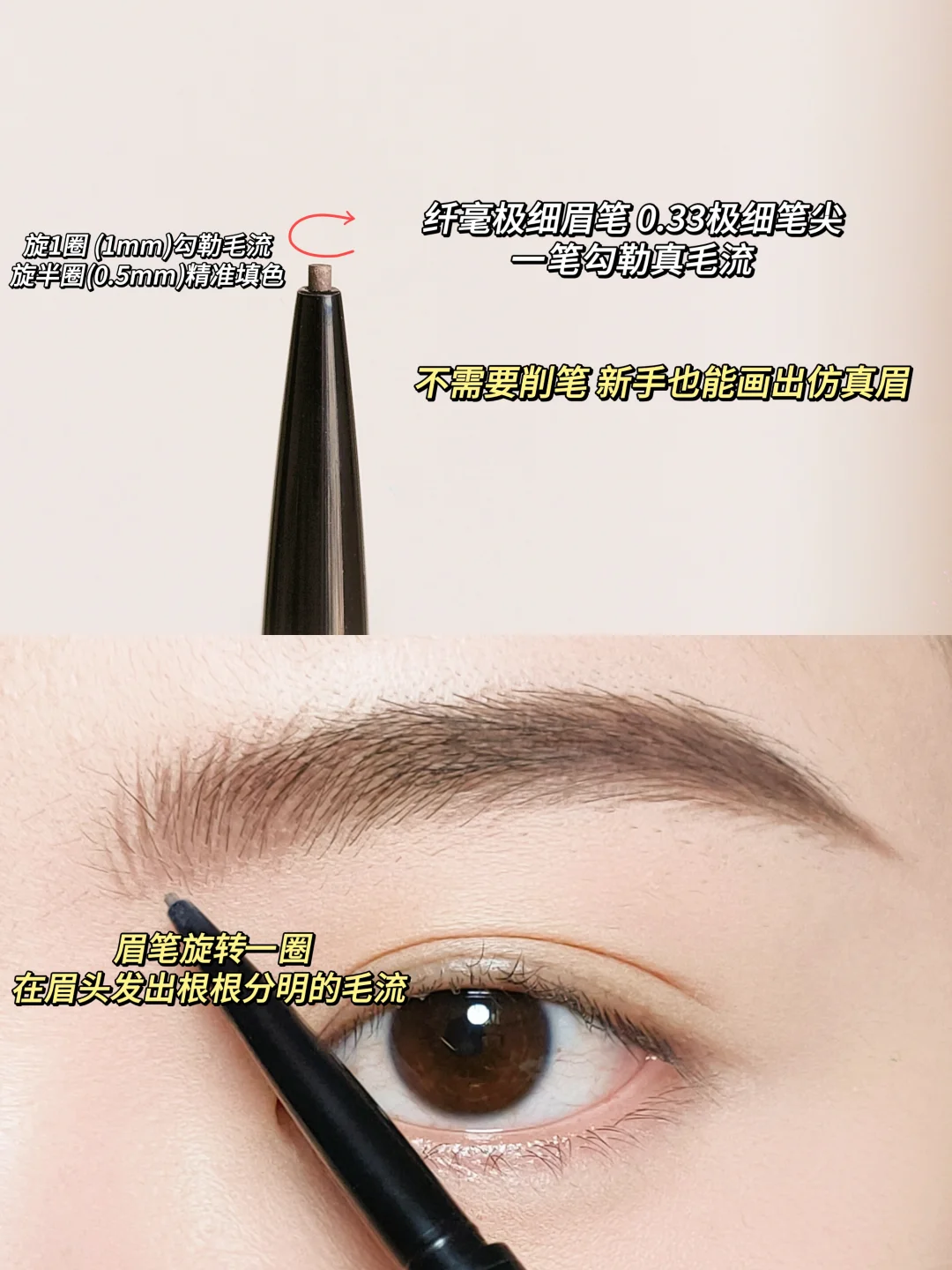 一直以来都是植村秀家的铁粉,这次他们又新出了纤毫极细眉笔 我又被拿捏了! 手残党不需要削笔也能画出妈生野生眉啦~ - 以前自己削的细眉笔 一使劲就容易断,这支做了稳固结构可以保护笔芯! 笔尖够细才叫“极细”,0.33mm 真的细到能画出仿真毛流, 顺着眉毛生长方向轻轻勾勒,眉头瞬间毛茸茸的,呼吸感拉满! - 持妆力是真的顶,五重油蜡配比的配方太能打了! 我带妆8小时,加上晚上健身暴汗1小时,眉毛居然纹丝不动 - 新手小技巧:上完底妆再画眉(油活配方会更显色)