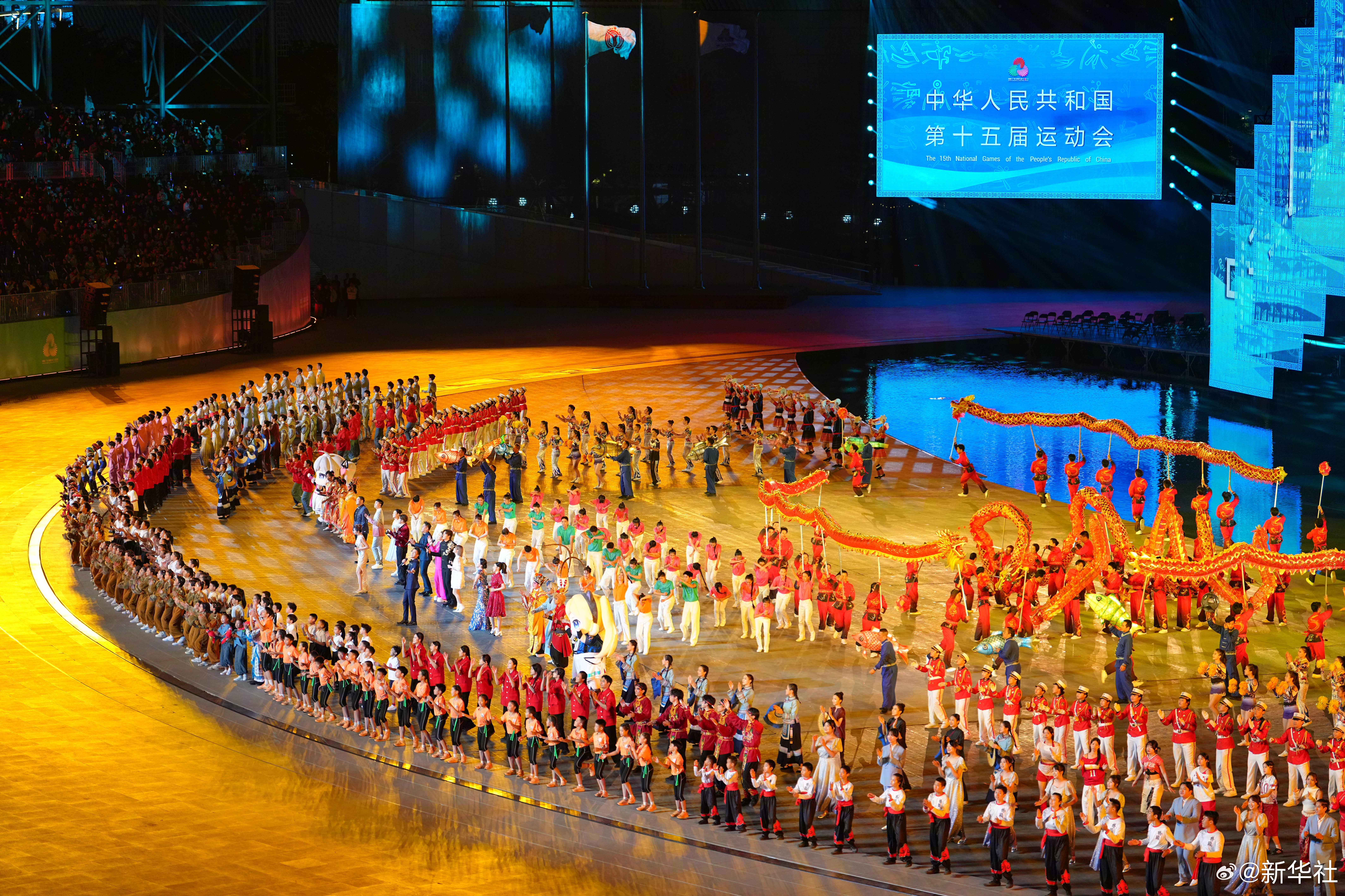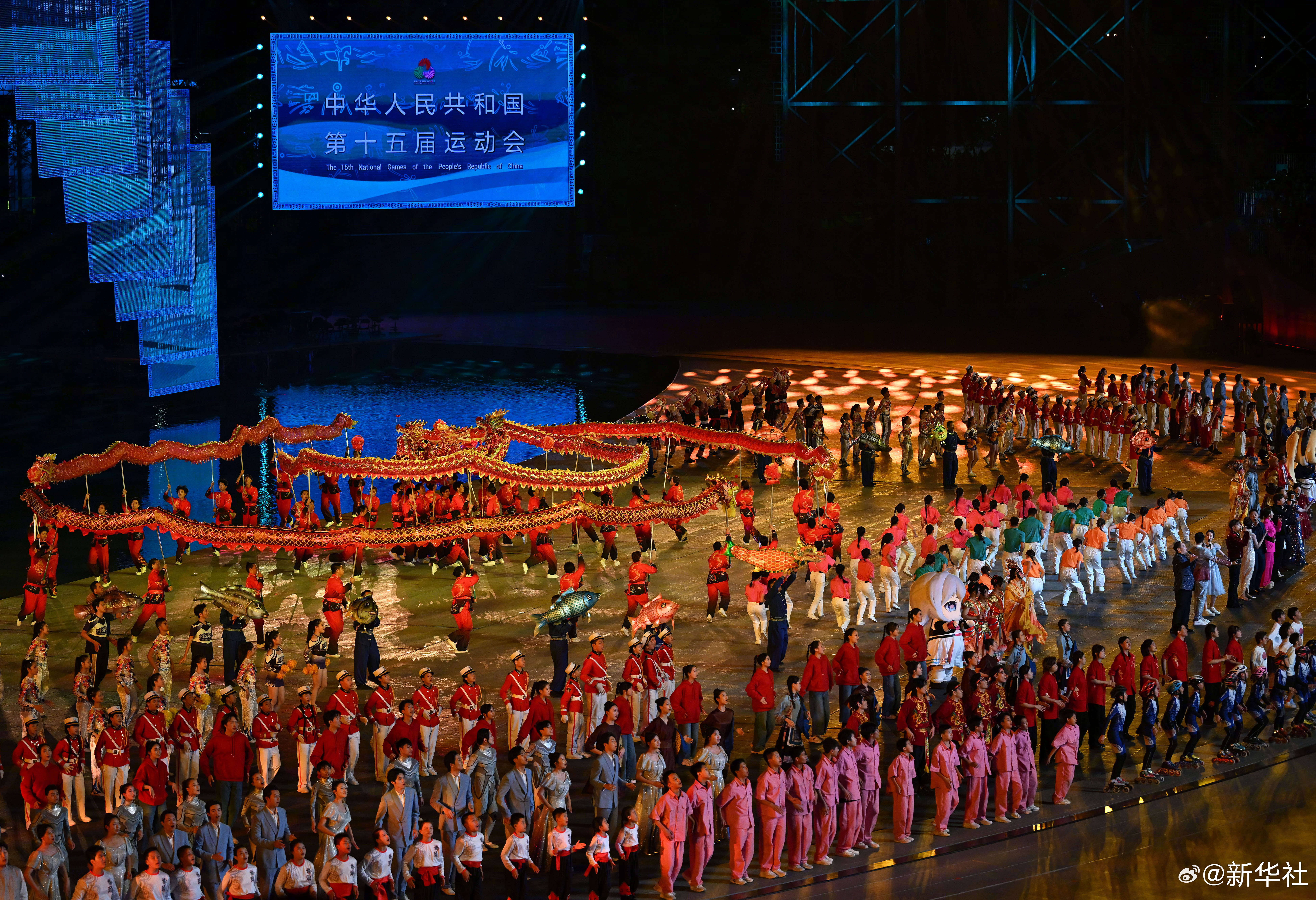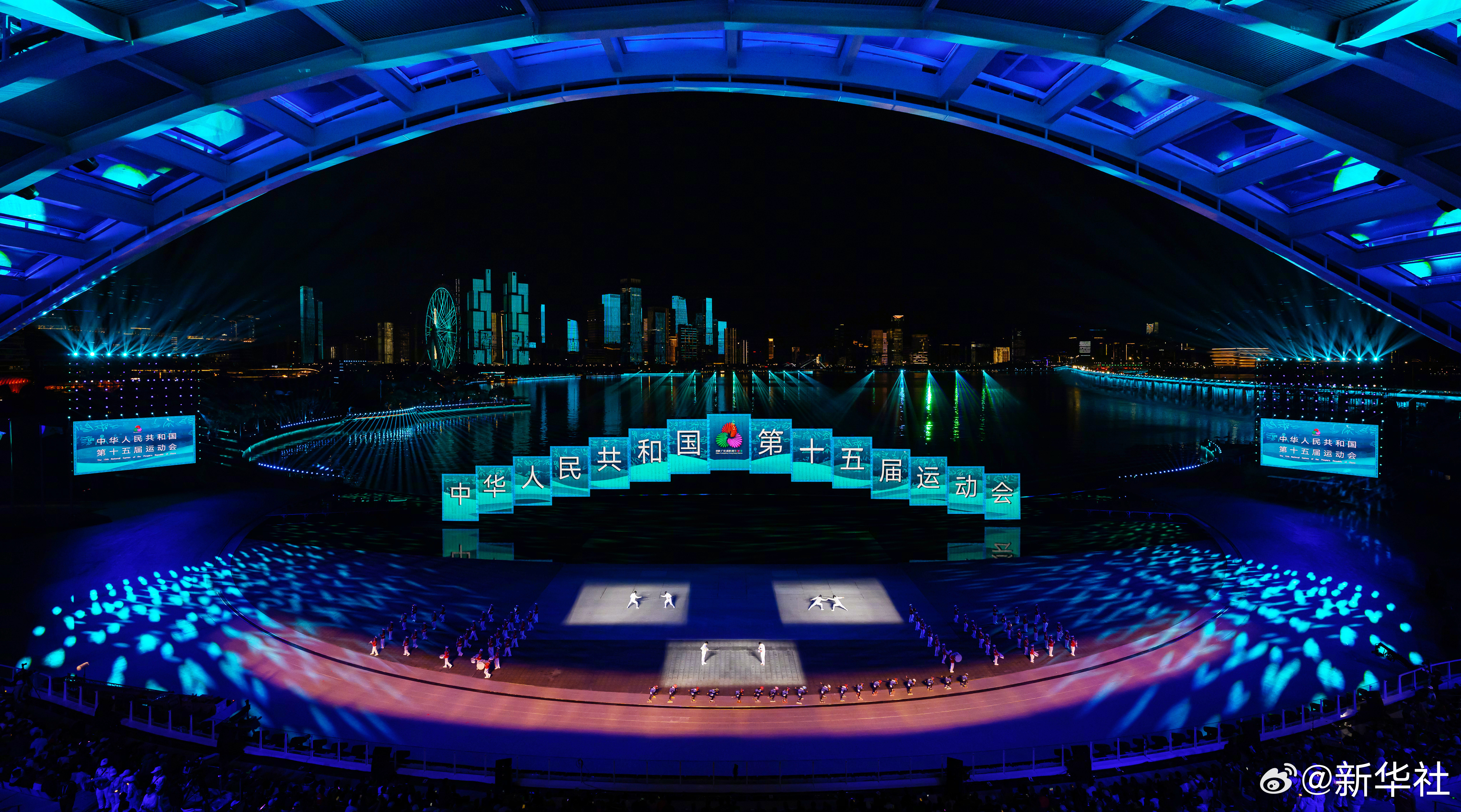 今晚,第十五届全国运动会闭幕式在广东省深圳市前海欢乐剧场举行,演员在闭幕式现场