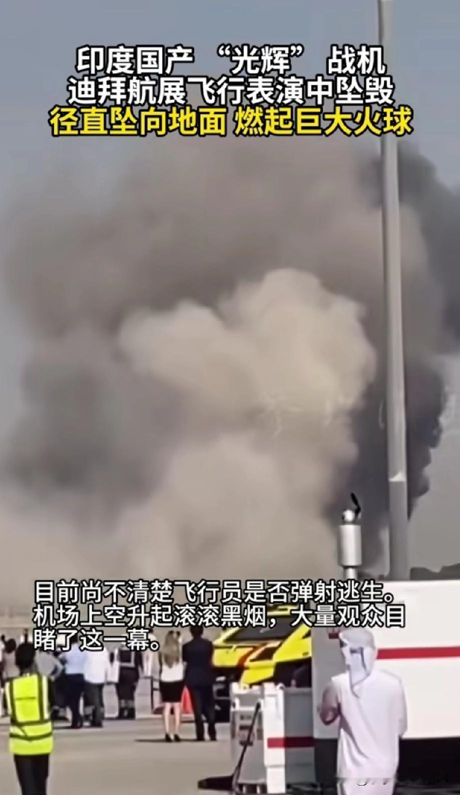 三哥的光辉战机“一展成名”! 今日在航空飞行表演时,印度一架国产“光辉”飞机在表演时突然冲向地面,燃起熊熊大火。 我终于知道三哥为啥在印巴空战中不让光辉战机出战了,原来他还有这一项技能没有实验完成。因为它过于先进,就是在它完成任务以后,万一回不去了,要冲击地面完成技术的销毁。 估计下一次万一印巴有冲突,光辉战机肯定能力战群雄,有更加光辉的表现。三哥真牛!